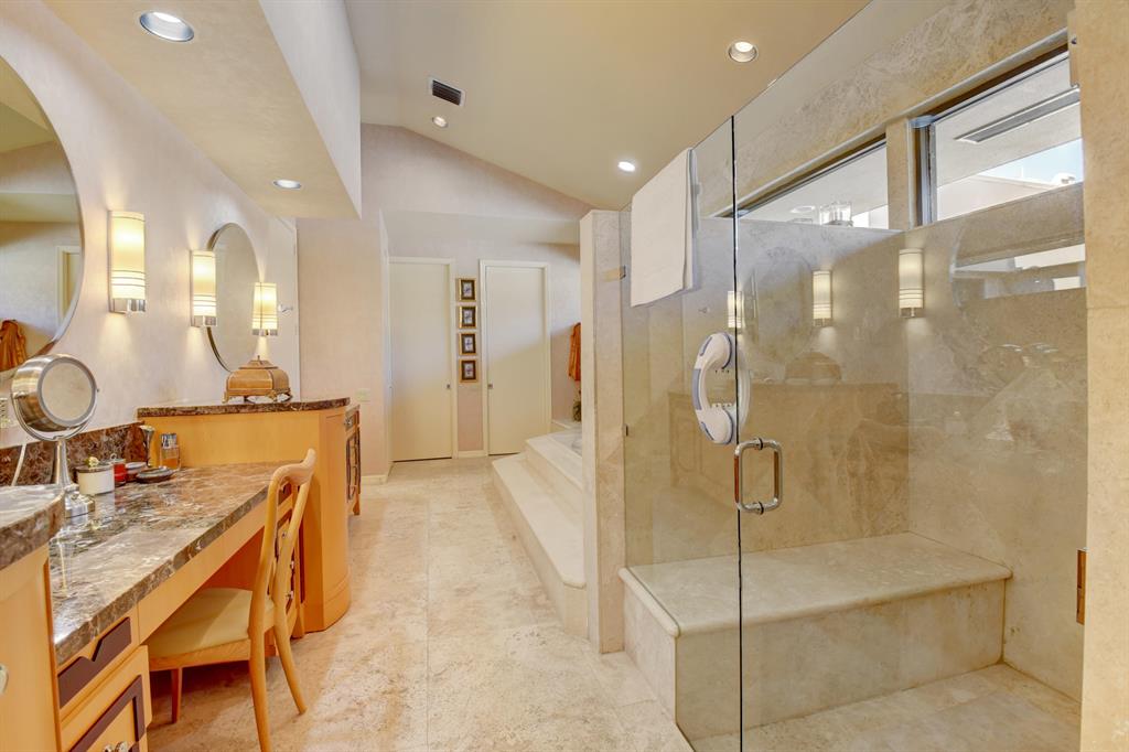 Relocation causes this sale, Very motivated seller. Bring offers. You are looking at one of the most sought-after homes in prestigious Bocaire Country Club. Stunning double lot almost one acre corner estate! Gorgeous foyer entrance to a wide-open floor plan. The great room perfect for entertaining has custom vaulted hardwood ceiling. Home features seven bedrooms each with their own ensuite bath. Large kitchen featuring twin SubZero refrigerator/freezer, Miele, and Gaggenau appliances. Master bedroom has sitting area and extra-large walk-in closets. Master bathroom has dressing area, oversized stall shower with marble bench and Toto fixtures. Massive resort style pool. Endless golf course views. Brand new seven zone HVAC system. Four car garage plus two golf cart garages.