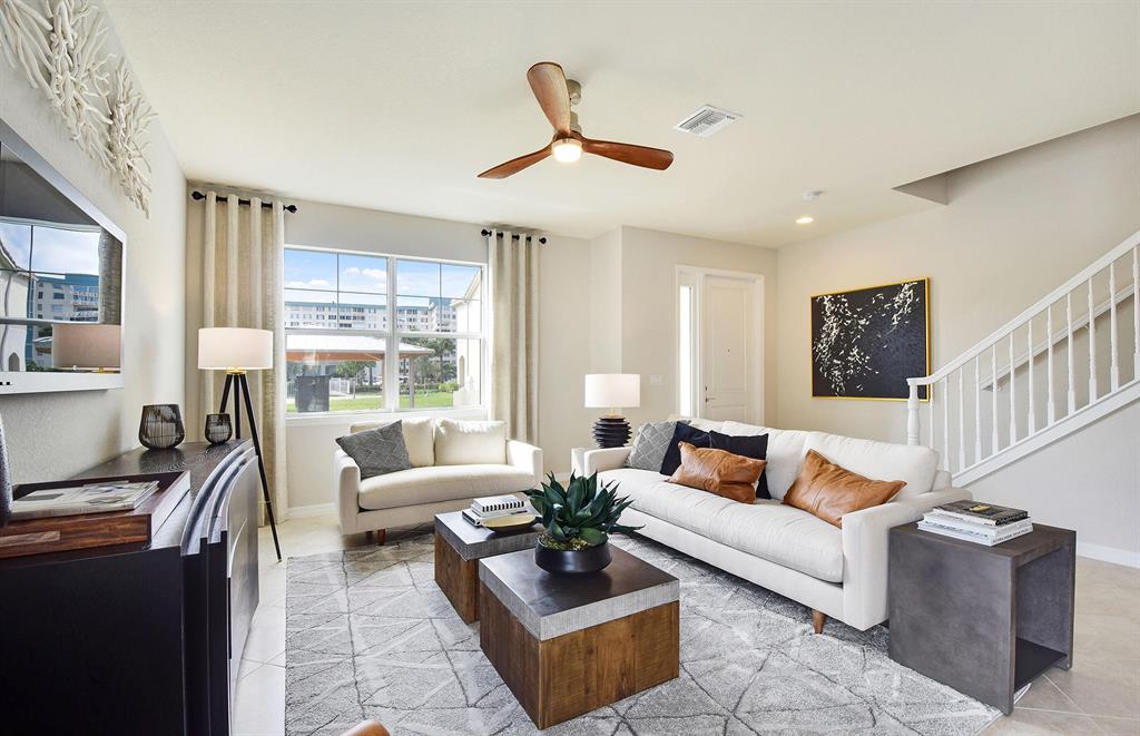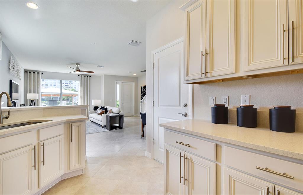 The two-story Magnolia Interior plan boasts an open-concept gathering room area and a rear load one car garage that opens to the kitchen for ease of access. This Magnolia Interior home is available for quick move-in. This one-car garage townhome features impact glass throughout, Lagoon countertops in the kitchen, Winstead Maple/Sasaparilla cabinets in the kitchen, Drop Tray ceiling in Owner's Bedroom, tile on the first floor, and much more!