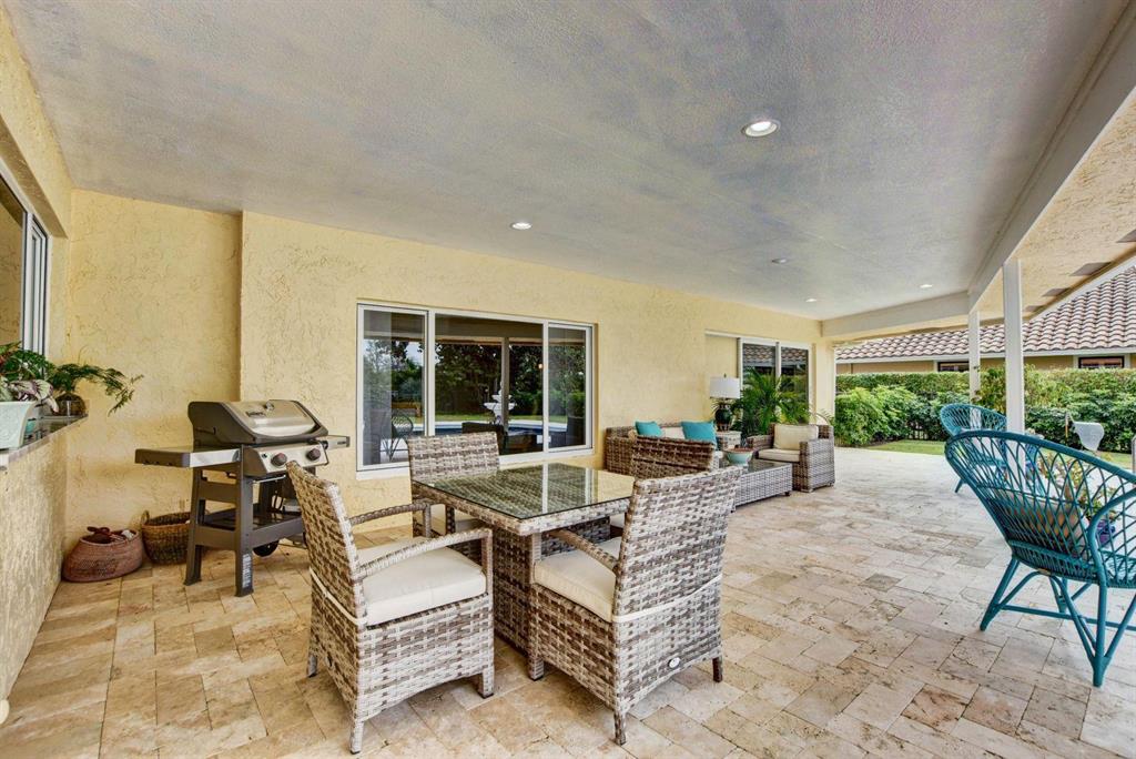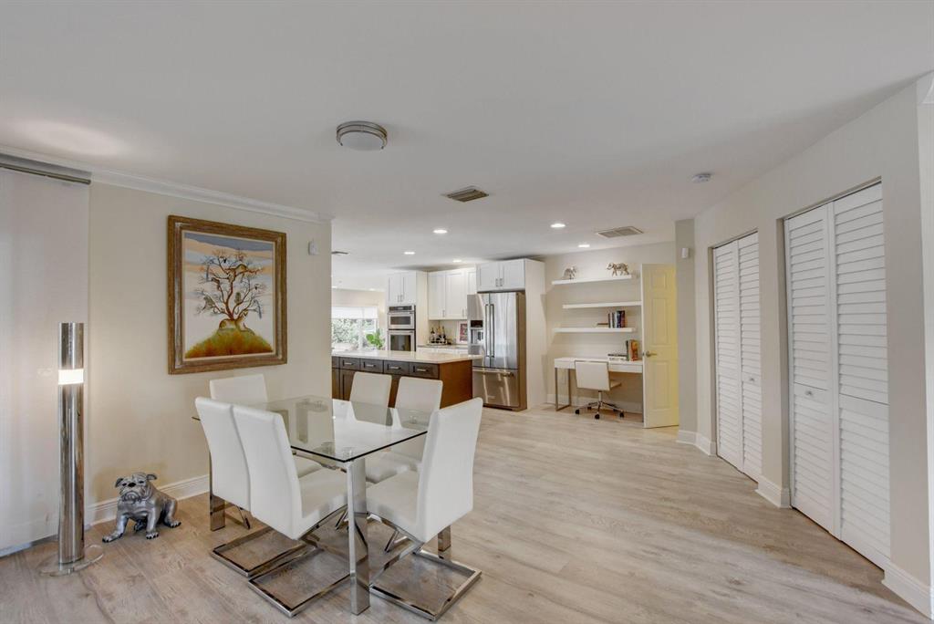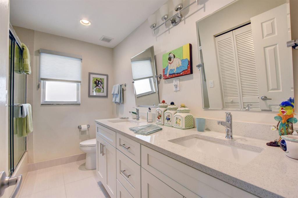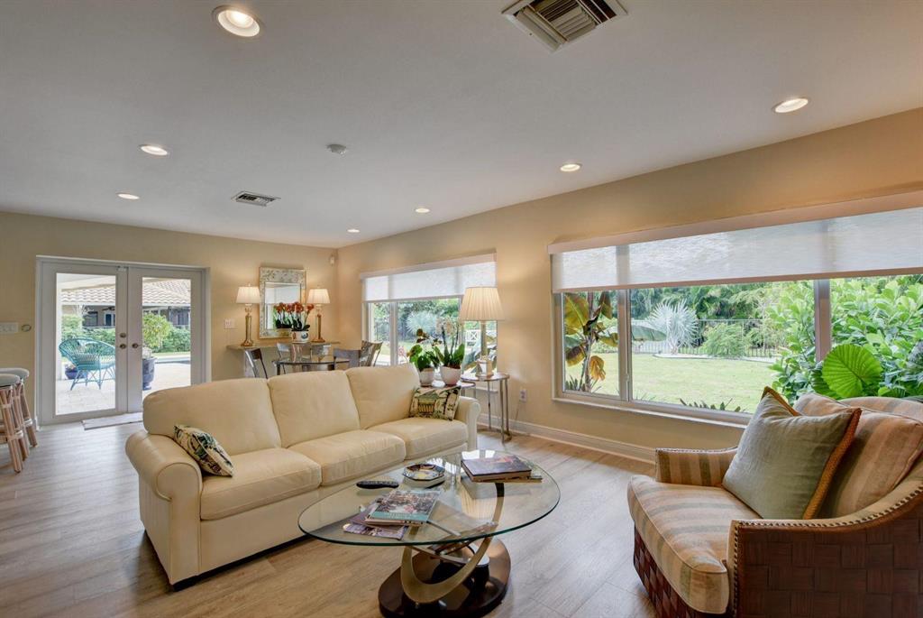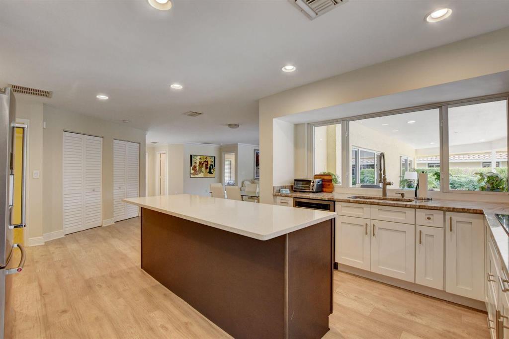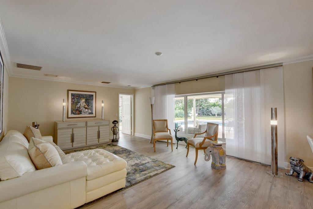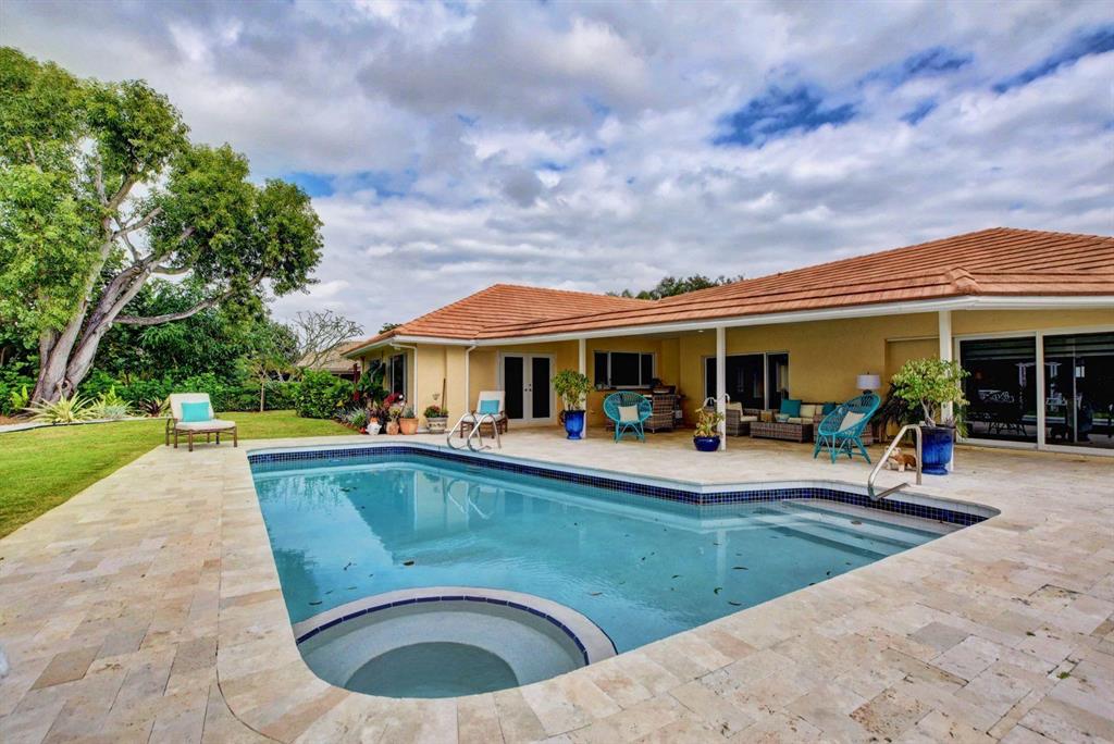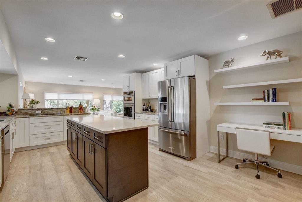 Beautiful Single Story renovated home in desirable West Palm Beach; Presidential Estates a gated community offers LOW HOA and tennis court. 4BD (redesigned as 3BD w/large great room) + 3BA, 2 car garage with large driveway for extra parking, oversized fenced back yard lot 140 x 107 has covered patio with private pool overlooks the NEW Banyan Cay, a Jack Nicklaus Signature Golf Course w/new soon to come club house and hotel. Golf & Social Memberships are available but NOT mandatory! This spacious home is all new with floors, hurricane impact windows, open eat-in kitchen design with custom cabinetry, granite counter tops, stainless steel appliances and more. Large master en-suite with new custom walk-in closet.