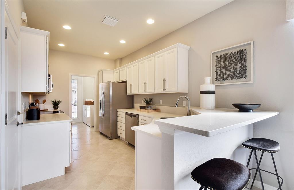 The two-story Magnolia Interior plan boasts an open-concept gathering room area and a rear load one car garage that opens to the kitchen for ease of access. This Magnolia Interior home is available for quick move-in. This one-car garage townhome features impact glass throughout, Desert Silver countertops in the kitchen, Lillian Deco Laminate/White cabinets in the kitchen, Drop Tray ceiling in Owner's Bedroom, tile on the first floor, and much more!