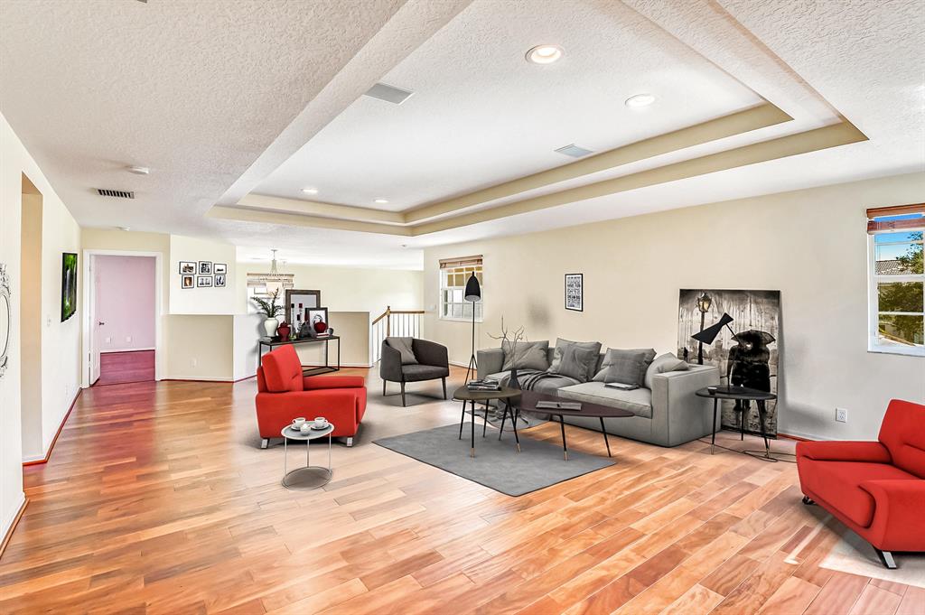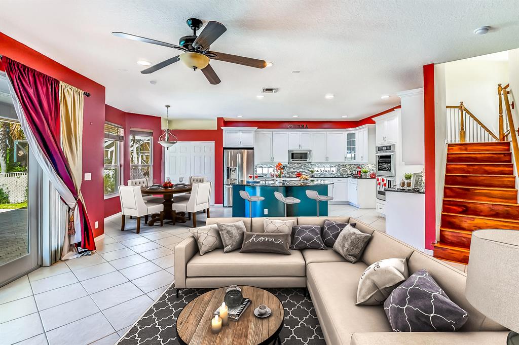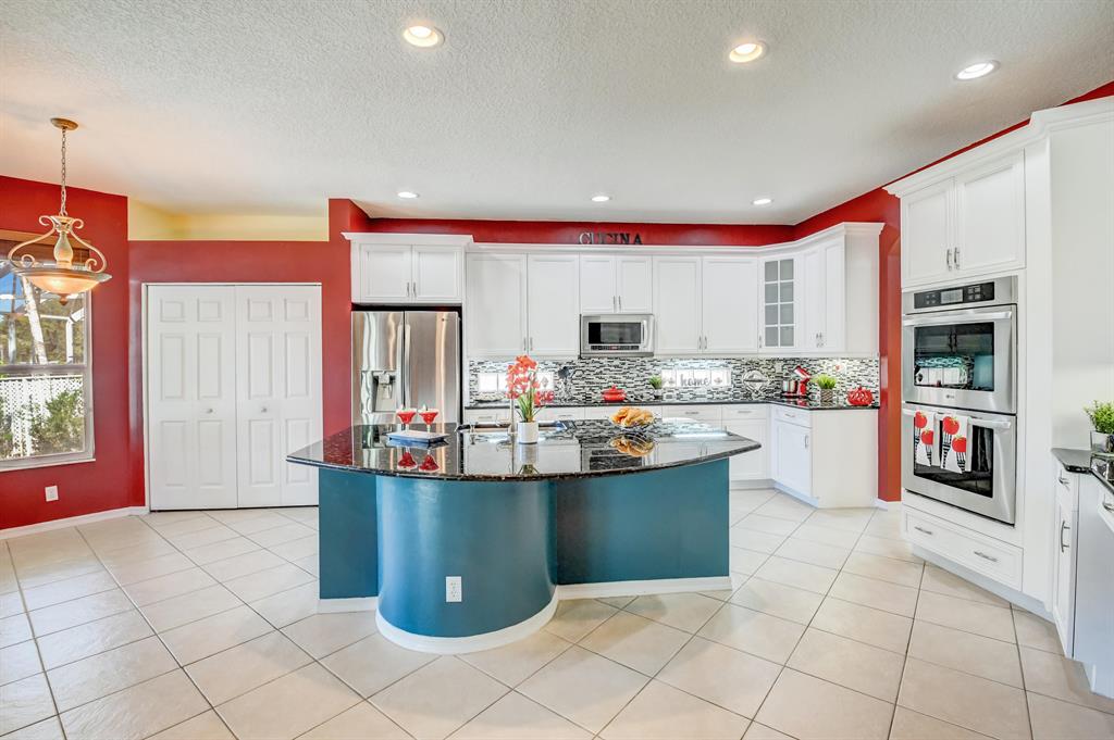 Dramatic entrance w/soaring ceilings & picturesque windows. Enjoy the sense of openness, volume & space. You can have it all with this fabulous 4 bedroom, plus a huge game room & loft, 3.5 bathrooms, 3 car garage, waterfront & pool home. Hurricane Impact windows/Hurricane Impact French doors/tiled throughout downstairs living area/double staircase to the 2nd floor with laminate /wood flooring on the stair case and entire 2nd level/this staircase can be accessed from different areas of this home. The kitchen has been completely renovated with granite countertops, huge granite center Island, glass tile backsplash, LG Stainless Appliances, Double wall oven, built-in desk, breakfast nook eat in area and opens to an enormous family room which all over looks the pool and waterfront. (more)