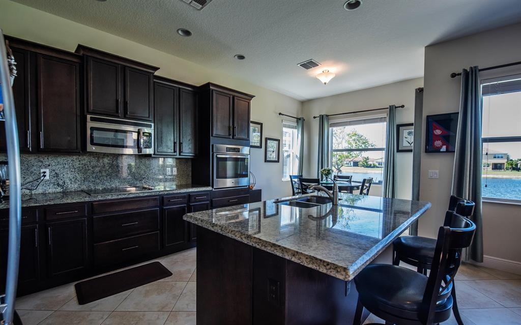 Look no further, the most affordable home in PortoSol has just hit the market! Built in 2015, this home feels brand new and shows like a model! With serene water views from almost every single room, this popular 'Sydney' floor plan was built with all the bells and whistles and offers the 4th bedroom and 3rd full bathroom downstairs for convenience. Fit for a chef, the custom, gourmet kitchen will impress with 42'' wood cabinets, built-in oven, beautiful granite, & stainless steel appliances. IMPACT WINDOWS throughout, formal dining room, upgraded baths, huge walk-in master closet, upstairs laundry, and upgraded landscape package add to the appeal and charm of this immaculate home. Take in the beauty of the sunsets over the lake from your extended paver patio while watching the kids