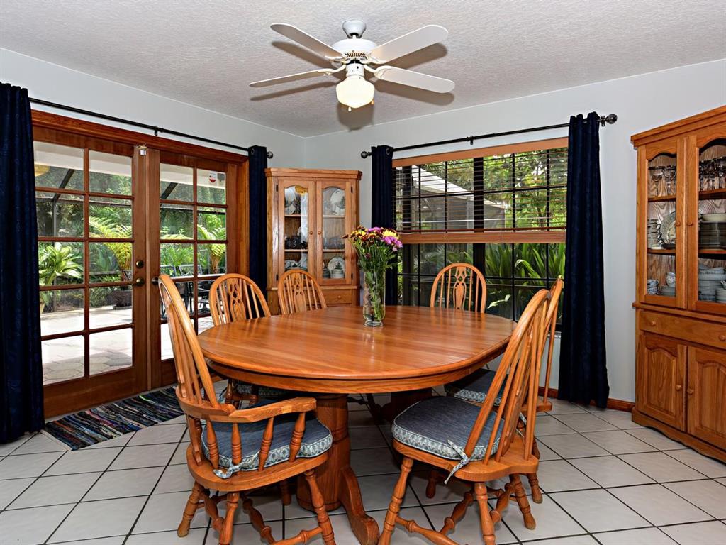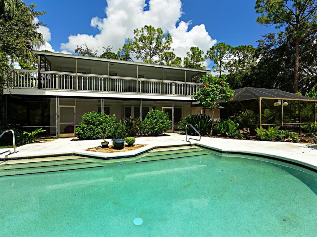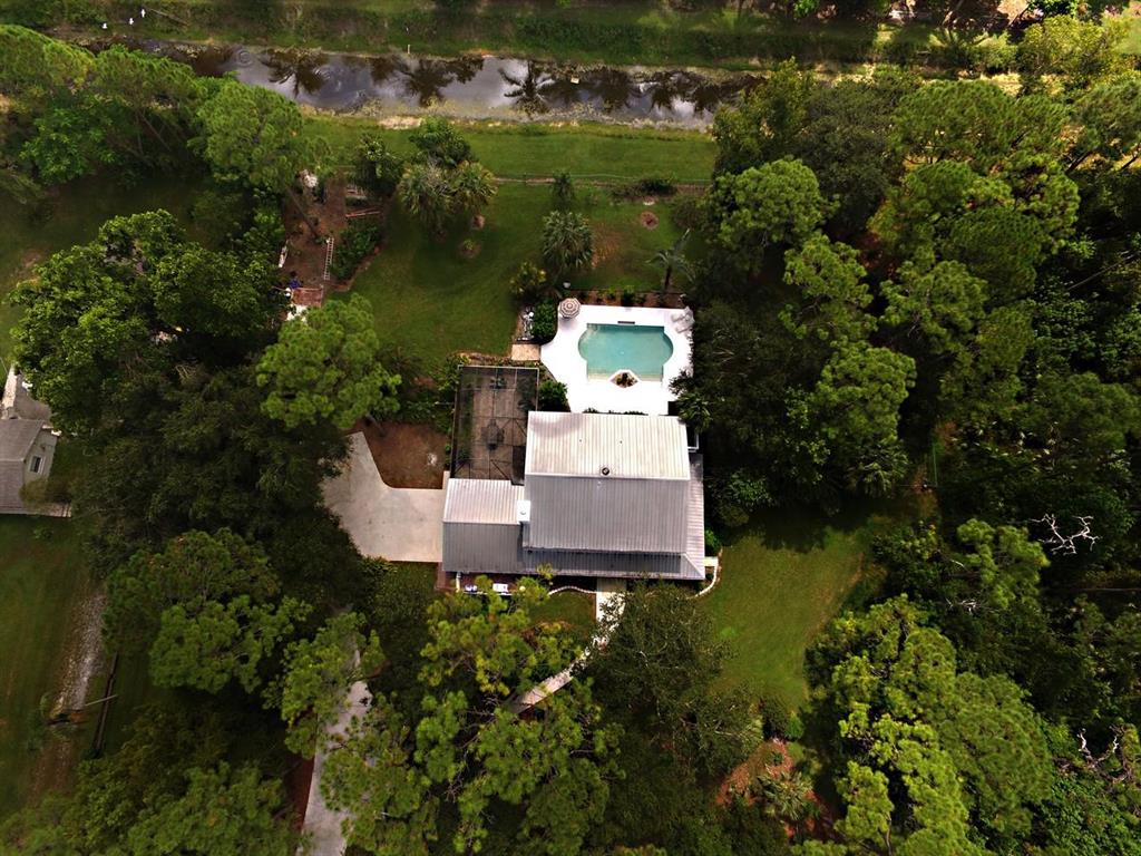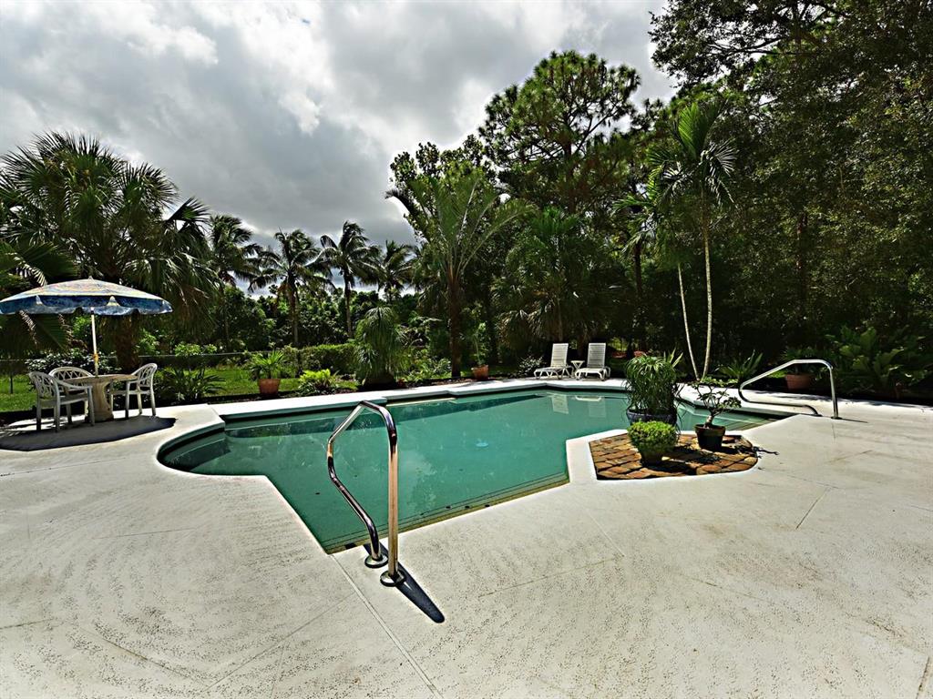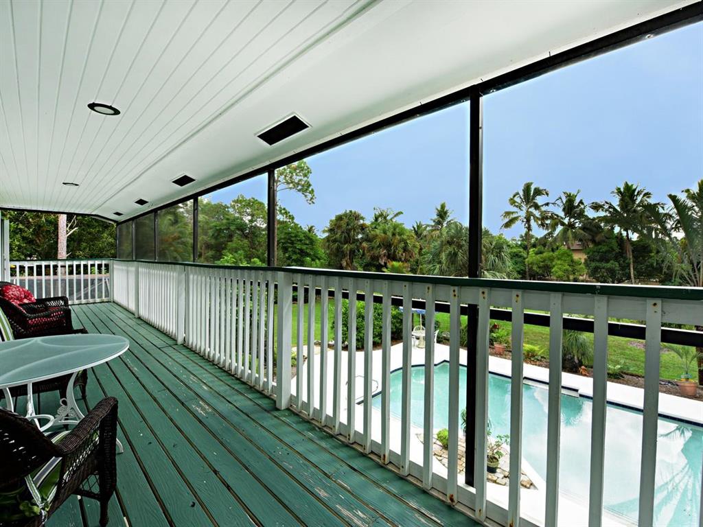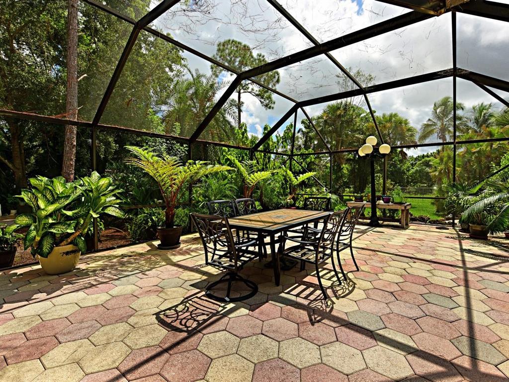 Bring the family and the toys to this spacious 2 story home in the Acreage. Tropical plants galore, and privacy as well. Enter from the long country porch into the large living room with fireplace. Circle around to the dining area, large enough for a table of 10. Fr. doors lead from 2 walls onto screened areas. More seating is provided in the eat- in kitchen, that boasts plenty of counter space, hickory cabinets, a desk area, bar sink, stainless appliances, and a double oven. The den/study also has french doors to the wrap around porch. Upstairs leads to the HUGE master b/r, upgraded bath with a quartz topped raised vanity. It also has fr. doors leading to the screened balcony, as does b/r 3. B/r 4 is presently used as an office. Outside