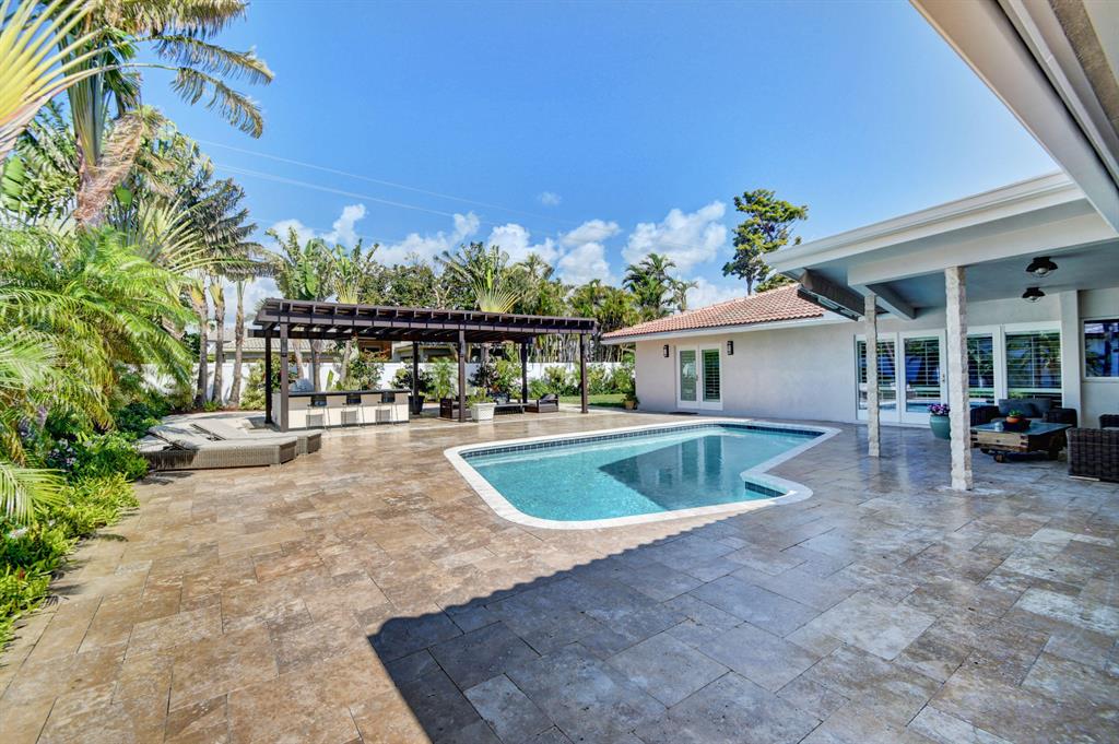 Superb location in prestigious Spanish River Estates Section, steps to ocean & Beach Club.This beautiful one story with 3000 living sq ft has been totally renovated with a new additional living sq ft. 3 bedrooms & office/den, plus playroom/exercise room, 3.5 bathrooms .There are multiple upgrades and improvements that are included in this flowing open floor plan. A new private fenced in pool, BBQ area, ,outdoor living,covered patio ,tropical paradise landscaping were just recently upgraded. The entire home has impact windows and doors plus a new hurricane garage door. This custom home has renovated kitchen and bathrooms. This is the perfect Florida lifestyle home by the sea.