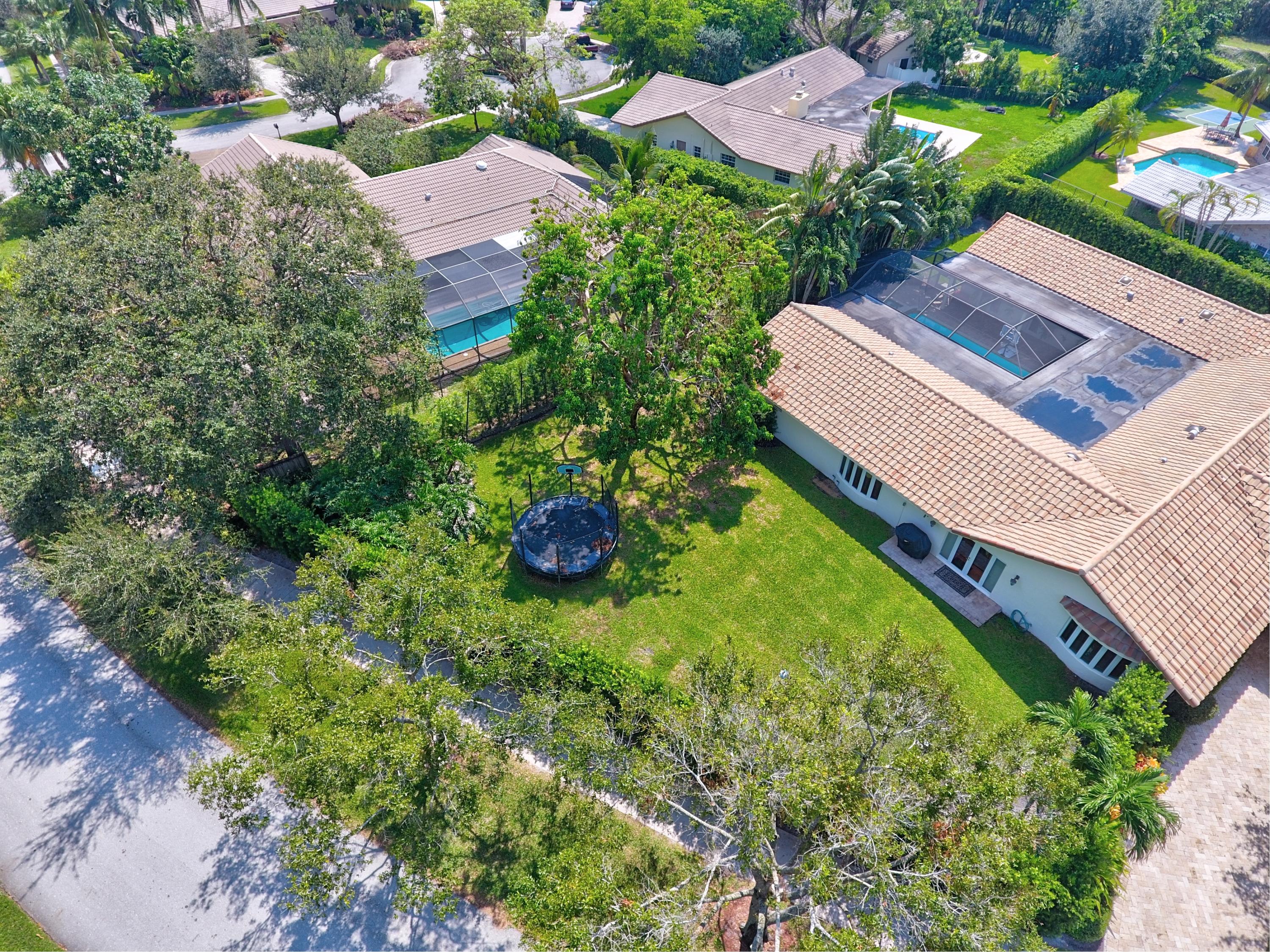This 1-story ranch home offers 5 bedrooms, 3.1 baths & a 2-car garage with the privacy of a cul-de-sac on an oversized corner homesite. The home wraps around the pool & patio area. A circular driveway & porte-cochere welcome you to the elegant vestibule leading to the living areas. Hardwood maple flooring gives the home warmth & unique character. The chef's kitchen features high-end appliances & finishes including a Thermador gas range & double oven, Subzero refrigerator, Bosch dishwasher & Viking wine cooler. The butler's pantry adjoins a personal office area. Feel safe & secure with impact glass windows throughout, a whole-house generator with a 500 gal. underground propane tank + an additional 250 gal. tank for other parts of the home including the gas fireplace.