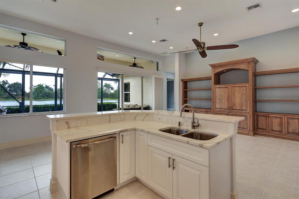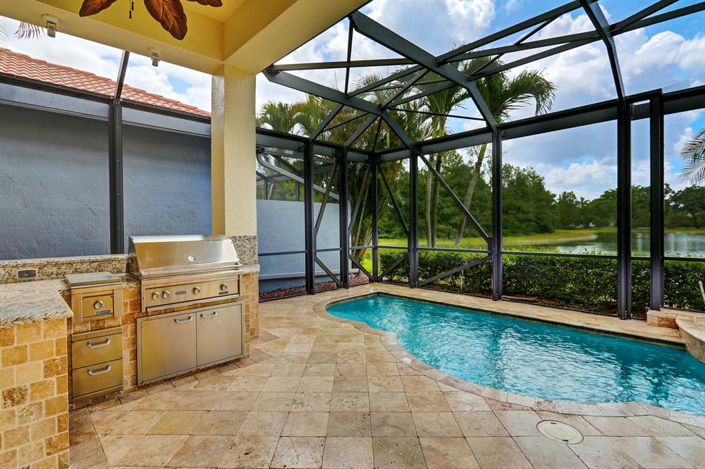 First time on the market! Don't miss this move-in ready, 3BR/2.5 bath + Den pool home. Enjoy sunsets over the lake while grilling poolside in your summer kitchen or entertain friends and family in the oversized living and dining areas. The vaulted ceilings, open floor plan and large windows everywhere make this bright home feel even more spacious. The main kitchen was completely renovated w/ quartz countertops, 42'' cabinets, under cabinet LED lighting, wine cooler + has stainless appliances. Master bedroom on the main level has new carpeting, paint and walk-in closets. It has direct access to the pool. The bathroom was completely redone including a soaking tub + glass shower. The den, last used as an office, has custom built-ins + double desks, perfect for those who work from home.