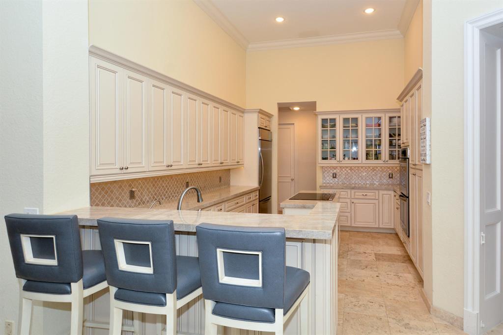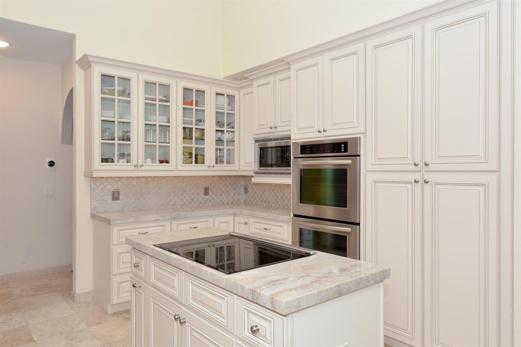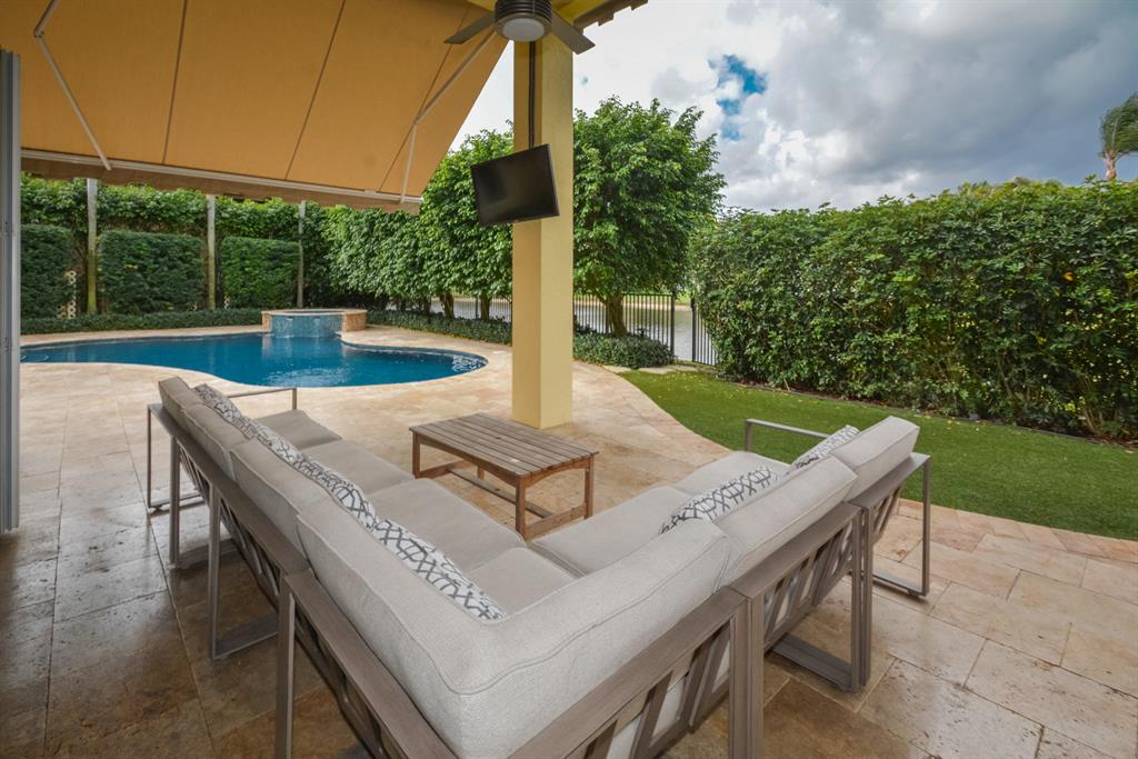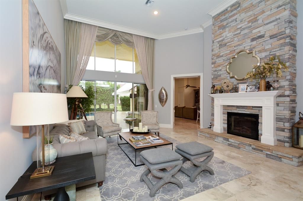 Beautiful renovated 1 story 4 bedroom lakefront home on lushly landscaped cul de sac lot. Over $300,000 in upgrades. Saturnia marble flooring in living areas, quality wood floors in master suite. Formal dining room, extensive moldings, dramatic fireplace in living room, large gourmet kitchen with center island & newer KitchenAid stainless steel appliances. Original roof regularly maintained in good leak-free condition. Sparkling heated saltwater Pebble Tec finished pool & spa, summer kitchen, covered patio with cypress ceiling & retractable awning overlooking serene lake. Travertine marble driveway and patio. Other upgrades include impact glass & accordion shutters, Nanny camera throughout, LED lighting & landscape lighting, Sonos speakers, gas run generator, & water filtration system.