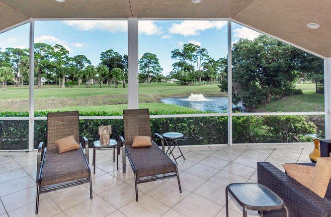 This beautifully and totally renovated CBS home has the views of both water and golf. Newer appliances. Newer lanai (screened) and set up as a 3BR/2BA home. It is also 2BR/Den/2BA home in move-in condition. Newly landscaped. Motivated Sellers, must see.