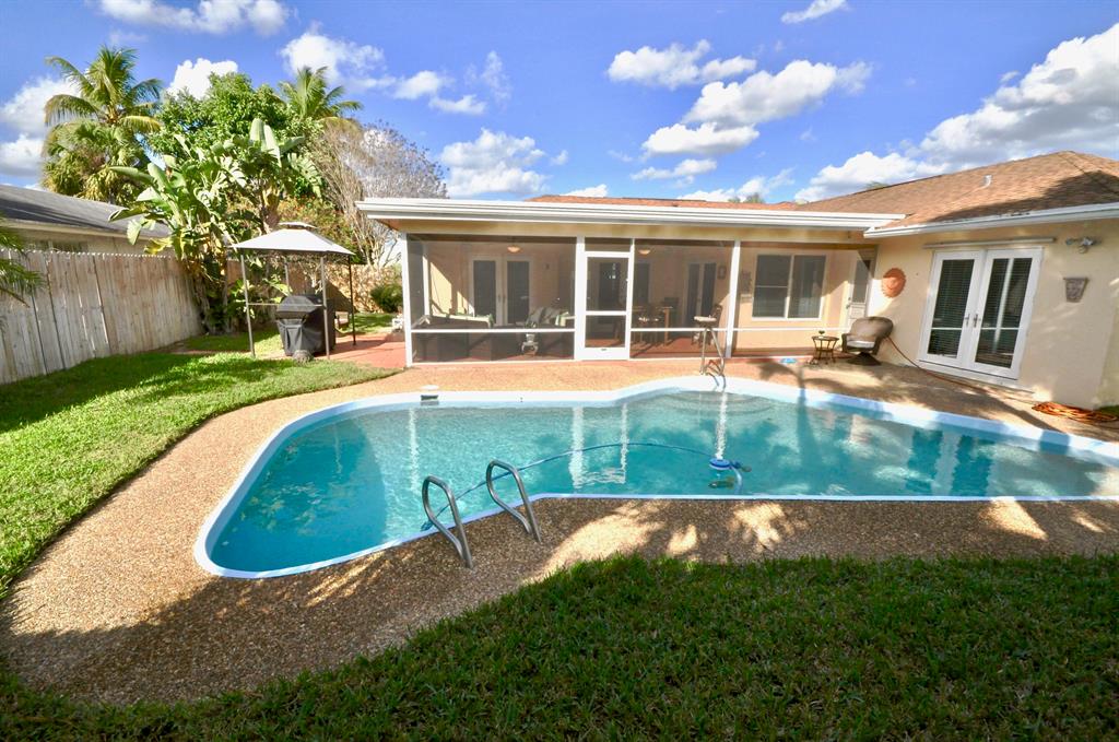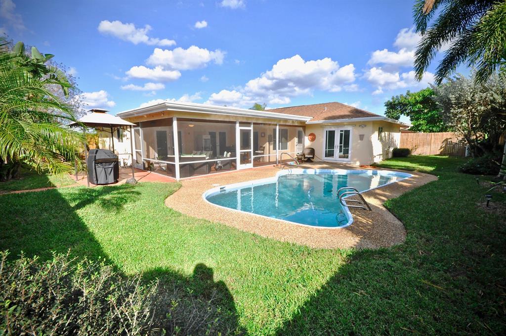 Beautiful sunset views from this bright & spacious pool home in the highly sought after Woodcrest community. Upgrades include Full Impact Window and Door Protection. Drink water from the faucet with it's Rain Soft full house water purification system. Remodeled kitchen with new Samsung appliances and glass backsplash. Custom paint through out from walls to ceiling. All new ceiling fans/light fixtures with new light switches. Remodeled master bath and new toilets. French doors off master, dining and second bedroom. 3 walk in closets and oversized pantry. All new window blinds. Wired for surround sound. New Samsung washer and dryer. Outside you'll find a newly refinished Pool with new pump. Also new is the irrigation system,fence,garage door and mailbox. Gazebo and newly screened in patio.