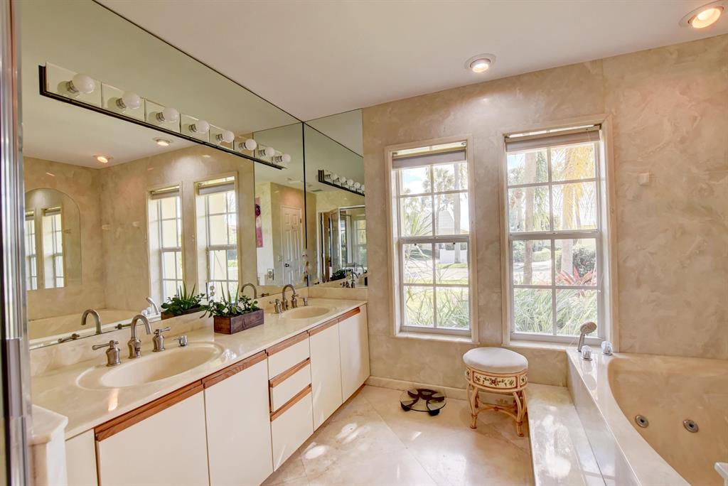 Charming 4 bedrooms, 3 full baths, and one half bath pool home in East Boca home is located in the highly desirable neighborhood of Carriage Hill. This is a quiet double cul-de-sac street with waterfront access homes across the street. Features include Impact windows, impact garage door, 24'' x 24'' marble floors throughout with wood flooring in the bedrooms. Master suite has dressing area with closets, large tub, separate shower, and dual sink vanity. Other features include a split bedroom floor plan with the master on one side along with the 4th bedroom which makes for a great office. Beautiful French doors open out to the large covered patio and open pool with travertine paver deck. Minutes to Boca Downtown, shops, A rated schools, beaches and highways.