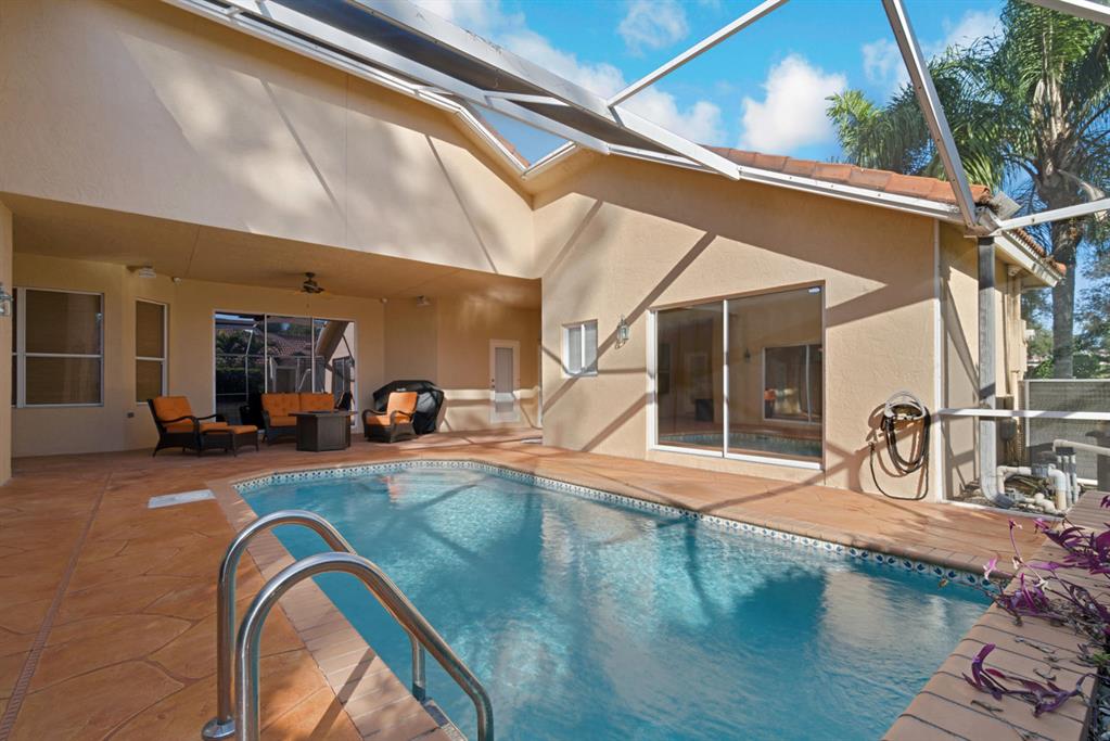 Gorgeous courtyard, pool home with guest house! Come inside and enjoy spacious living areas with tile throughout along with an inviting kitchen which boasts stainless steel appliances. All of the bedrooms are spacious as well. Outside you can enjoy a great courtyard with serene pool and a beautiful and very private backyard with no neighbors behind you! Property comes with a home warranty that expires end of year 2019. All of this located in the Estates of Royal Palm Beach a meticulously maintained subdivision in the heart of Royal Palm Beach and close to everything!