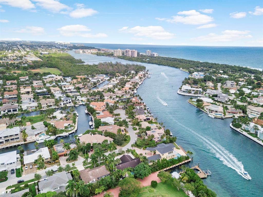 INCREDIBLE OPPORTUNITY to buy this beautiful home in the highly desirable GOLDEN TRIANGLE area of East Boca. Move-in ready condition. This premium lot also offers buyers a chance to achieve Intracoastal water views with a rebuild or 2nd story addition. Sitting on nearly 1/4 of an acre prime lot surrounded by multi-million dollar Intracoastal homes. Added benefit being located on a quiet cul-de-sac street with no through traffic; true prime location property.This family home features include large living areas & open kitchen with views of the lush, private yard, pool & outdoor screened patio. Each bedroom also has its own full bath & walk-in closet.Walking distance to Mizner Park hosting a multitude of Boca's downtown shops & restaurants, Fifth Avenue Shops and Lake Wyman Park.