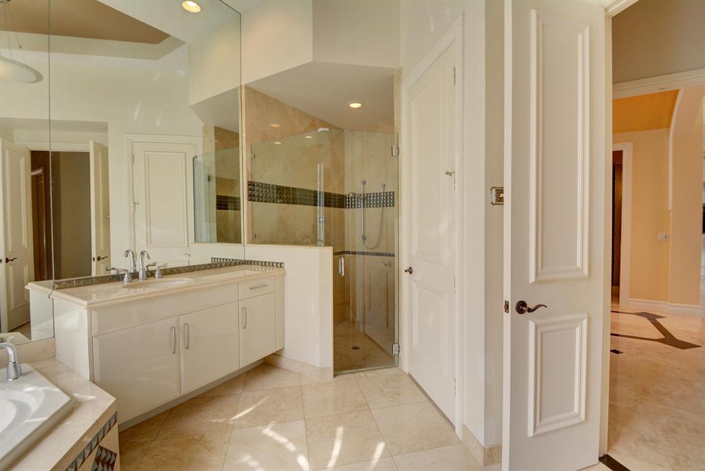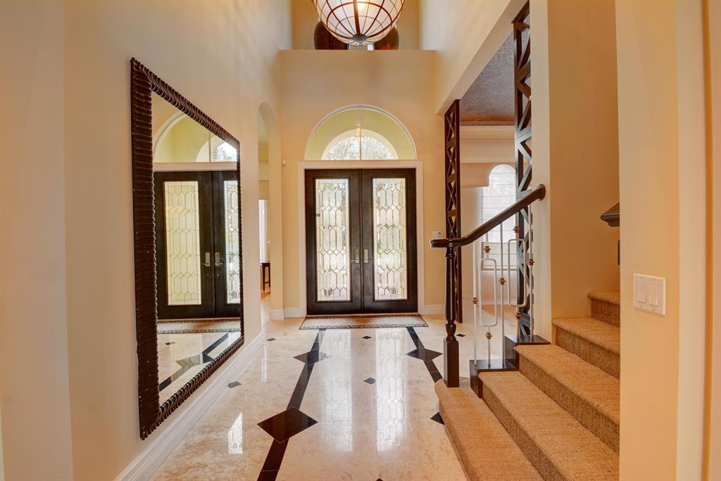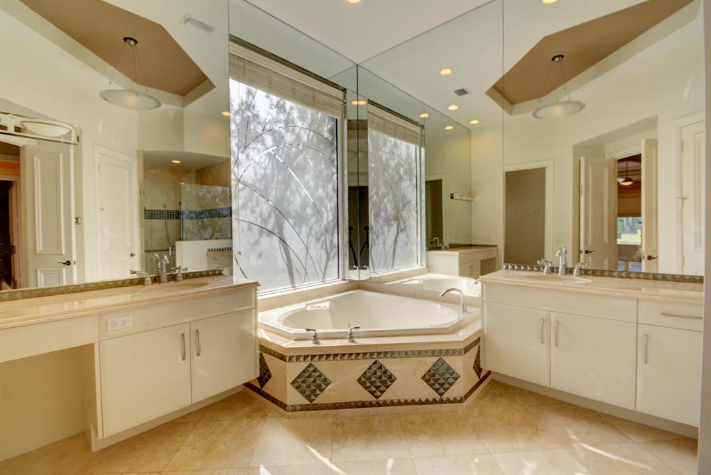 AMAZING VALUE! Breathtaking lake vistas & sunlight fill this magnificent estate of Tuscan & transitional style with 5 bedrooms + an office, loft & Florida Room. Featuring tasteful appointments. this elegant home offers a leaded glass double door entry; volume ceilings with crown moldings; Saturnia marble,wood, porcelain floors & neutral carpeting; a contemporary kitchen with white lacquer cabinets,granite counters,glass backsplash, stainless steel appliances & a charming breakfast nook; Living Room gas fireplace; Family Room & loft entertainment centers; Family Room dry; bar;his & hers Master commodes; custom window treatments; full-home home generator & MORE! French doors lead to a beautiful patio offering a spectacular lagoon style pool with spa, sun shelf, gazebo & long lake views