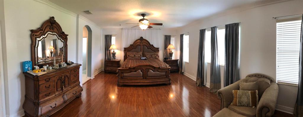Great 5BD/4BA/3 Car Garage home, situated in a gated community with 24/7 Security Guards. This unique layout offers 12ft ceilings downstairs & 10ft ceilings upstairs for that open airy feeling. Huge Master Suite with walk-in closets, Sitting area, large shower & Jacuzzi tub. The Living areas include Living, formal Dining & Family Rooms. Junior Suite for Guest includes bathroom and balcony overlooking the front of the house. The spacious kitchen offers large cabinets, , breakfast area and also an island, Granite countertops & newer Stainless Steel Appliances. You have new laminate floors on the stairways and the second story. This is an HOA Community & the fees include lawn care, sprinkler system, clubhouse, fitness center, pool, playground, basketball & tennis courts.