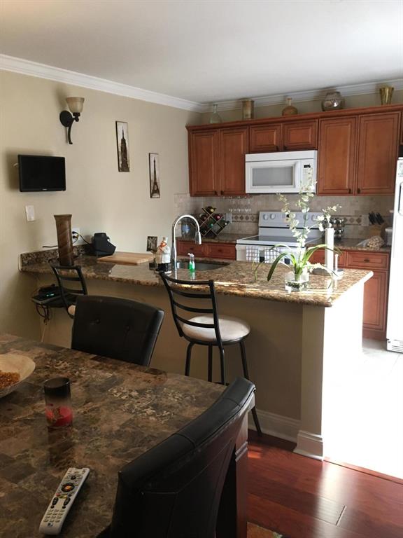 Beautifully remodeled downstairs with a laminate wood floor in the living/dining, new tile in the kitchen and bathrooms. Granite island countertop, wood cabinets with a TV installed in the kitchen! Appliances, AC and hot water heater are all between the ages of 3 and 7 years old.