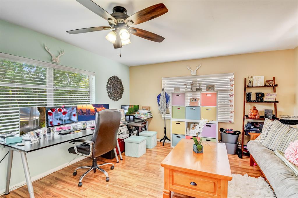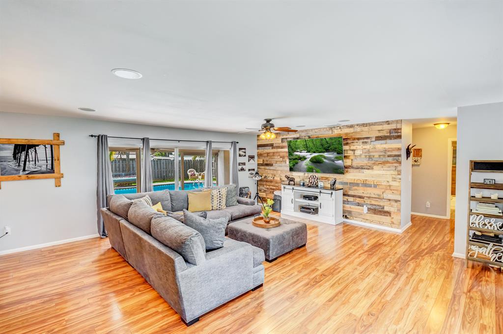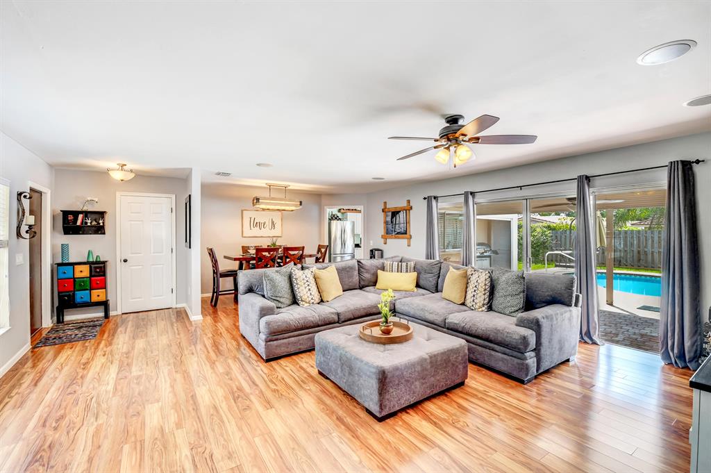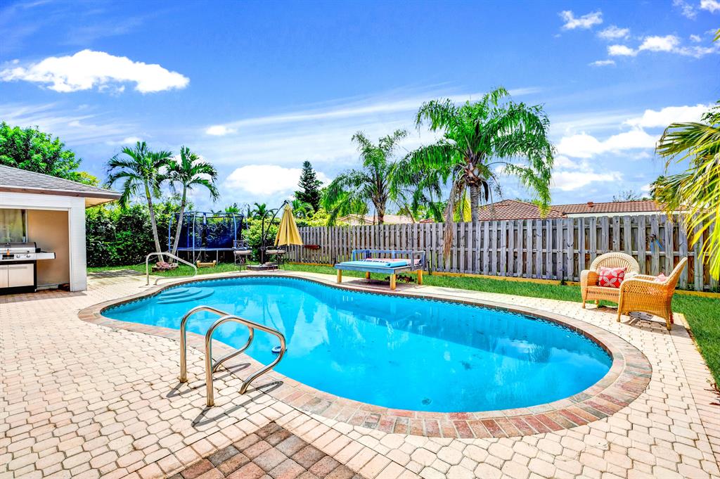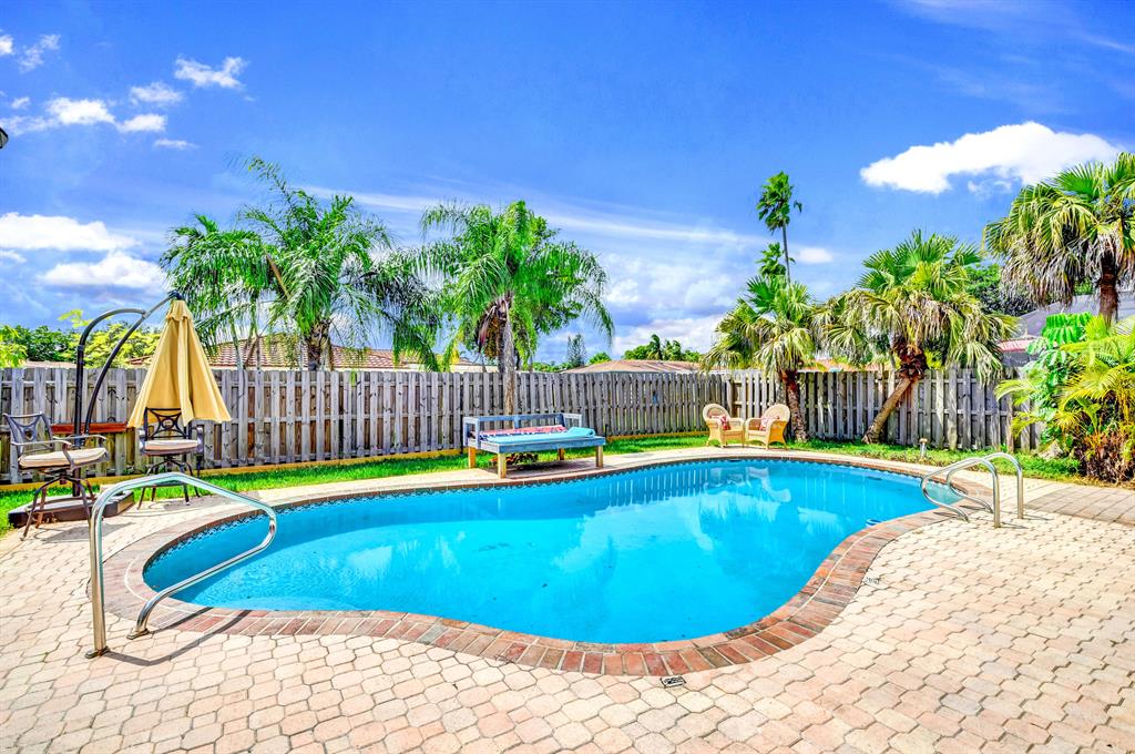 Fabulous open & Bright 3 Bedroom/2 Bath/1 car garage Pool Home. Dramatic entrance w/picturesque windows so you can enjoy the sense of openness, volume & space. Updated Kitchen with granite countertops, SS appliances, pass thru to pool area AND a Butlers Pantry. Updated Bathrooms with Ceramic wood like tile. Laminate wood floor throughout including in the bedrooms. The enormous Living room features a Decorative wall and HUGE Sliders to Pool Area. Tons of new light fixtures all over. Master bedroom has sliders to pool area. Covered & open patio with brick pavers. Amazing fenced in backyard with a fabulous pool. Great schools! Low HOA fee of only $34 a month! No clubs to join. Pets ok. FHA & VA loans ok! All ages! Attention Investors: You can rent right after purchase!