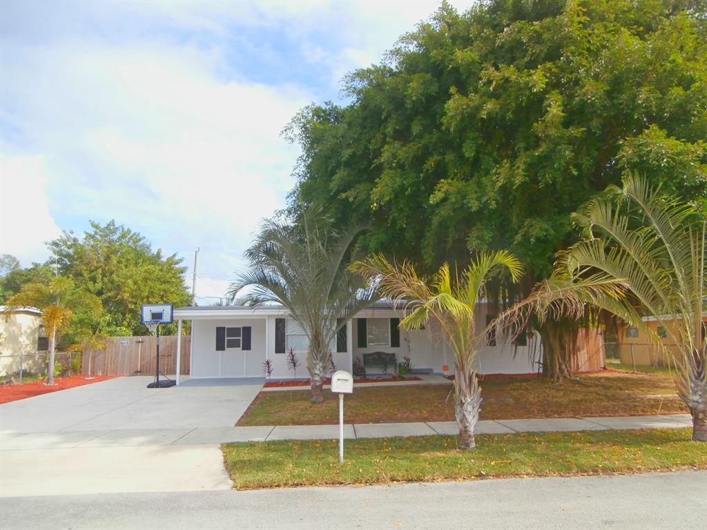 Terrific East Pompano 3 bedroom 2 bath single family home with plenty of charm! Big fenced back yard. Beautiful master bedroom with new bathroom. Gorgeous kitchen with new Carrara Quartz counter tops and stainless steel appliances. Split bedroom layout. Beautiful laminate wood floors. Full size washer & dryer. Large driveway with room for multiple cars, plus driveway gate to backyard suitable for boat or RV parking. Security system. Excellent location: close to shopping, restaurants, beach, bus stop, schools, parks and more. Sellers have a $148,000 assumable FHA mortgage at 3.5%