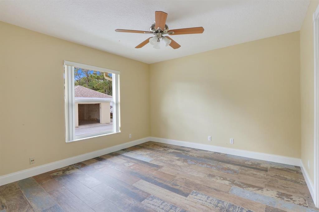 Get ready to get cozy and entertain in this completely updated happy, bright, open & airy 3 bedroom, 2.5 bath home with all the bells and whistles! This luxurious corner CBS block home is located on 1.32 acres with a fully fenced & electric gated yard, covered/screened lanai with resort style pool w/waterfall, alfresco shower, and Tiki Bar w/water & electric on the large patio. This split floor plan interior impresses with high ceilings, crown molding, beautiful light fixtures, well-equipped kitchen with granite counters & stainless appliances, hurricane proof impact doors/windows, a separate laundry room & and so much more. The property houses an oversized attached 3 car garage with extra storage, a 1 car detached garage with A/C,