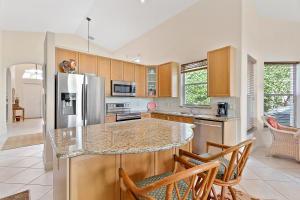 Enjoy sweeping vistas from this fantastic golf course home in the Preserve at Ironhorse. Situated on the 1st hole of the Arthur Hills championship golf course, this home has plenty of living space and is move-in ready! As you enter the home, there are two private guest suites on the left side of the home with laundry room and full bath. Spacious master suite is located on the opposite side of the home with large walk-in closet, sliders to the outdoor patio, and large bath with dual sinks, Roman tub and separate shower. The kitchen has been updated with new stainless steel appliances, granite and center island affording casual dining at the breakfast bar or in the cozy breakfast nook. An additional interior patio is the perfect spot for relaxing or al fresco dining. Cozy den and