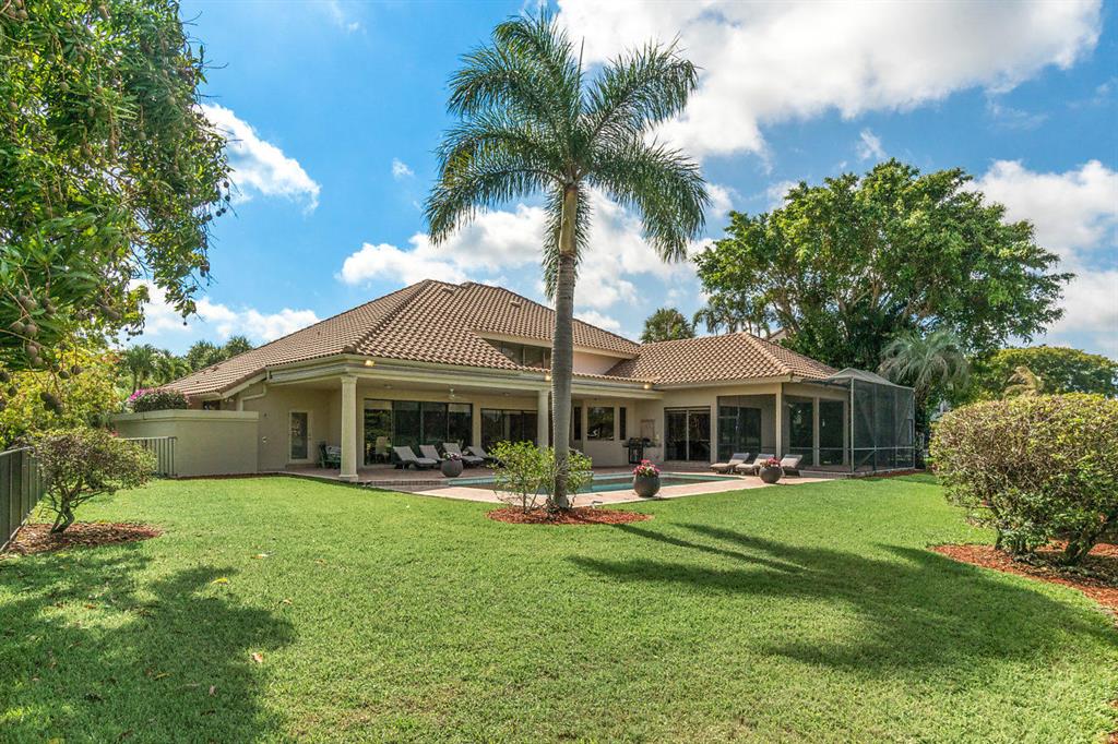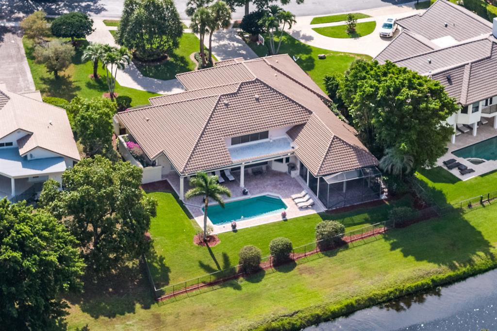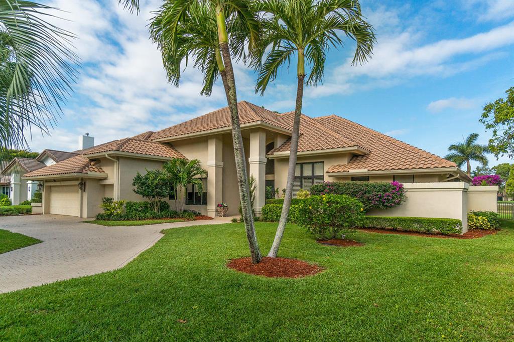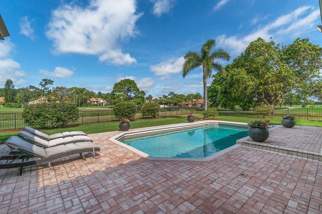 Custom estate situated on the 1st hole of acclaimed Broken Sound Country Club. As you enter the 1 story home you are greeted by endless Golf & Lake Vistas from the Family Room, Kitchen, and Master Bedroom. Natural light reveals real hardwood floors complemented by contrasting marble throughout. The home was completely redone recently & features a new kitchen with quartz counters & marble back splash, white kitchen cabinets, new appliances including a breakfast area highlighted by seamless bay windows. The master suite boasts separate tub & shower and his and her sinks. Other features include redone bathrooms, closet built-ins, smooth coated walls & ceilings, designer wall paper, and custom light fixtures. Fabulous outdoor living with screened in and op patio and enormous yard space.