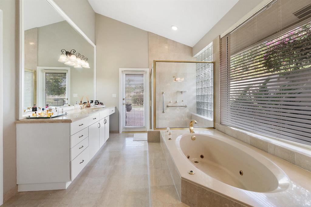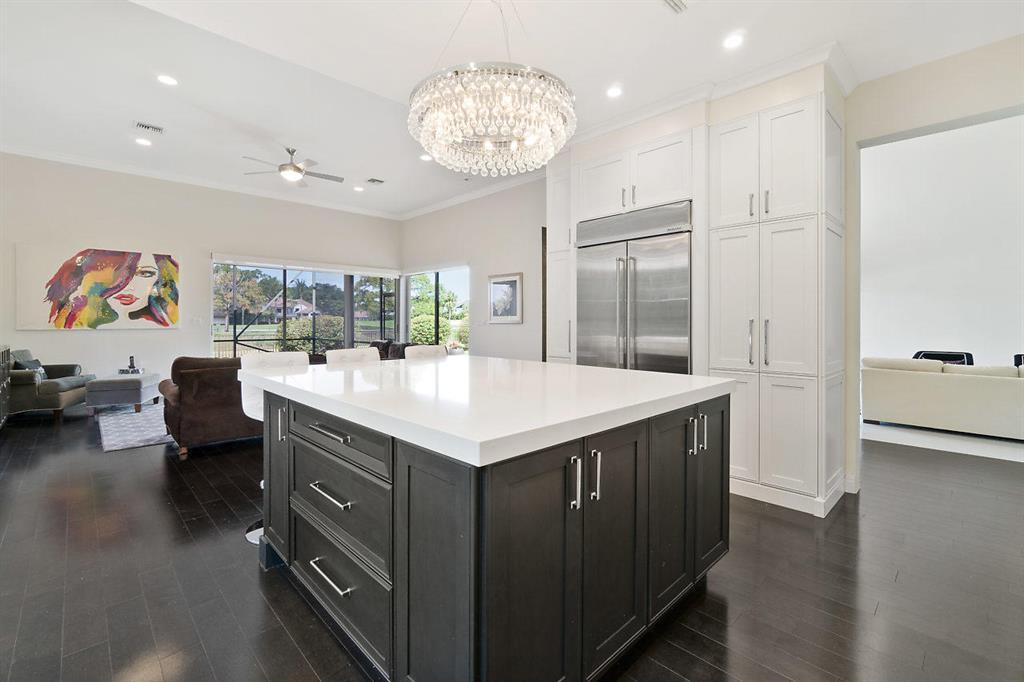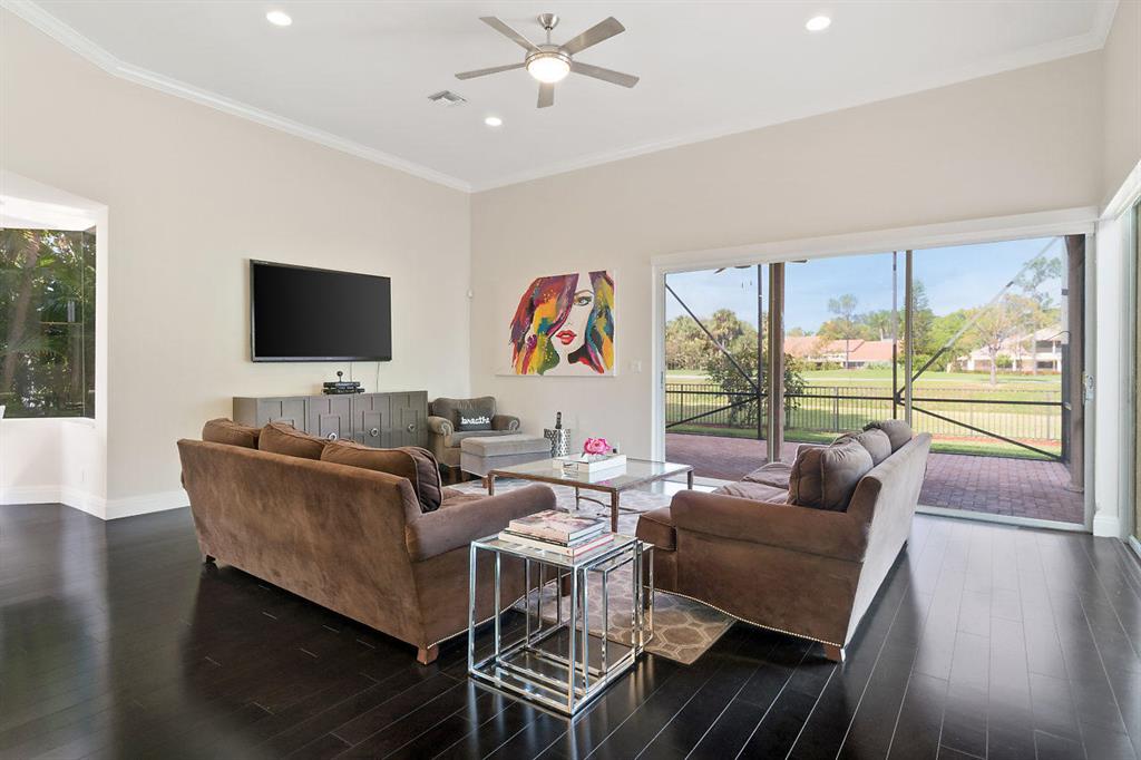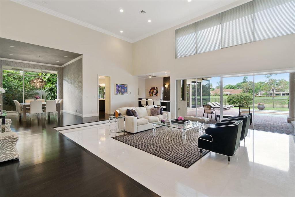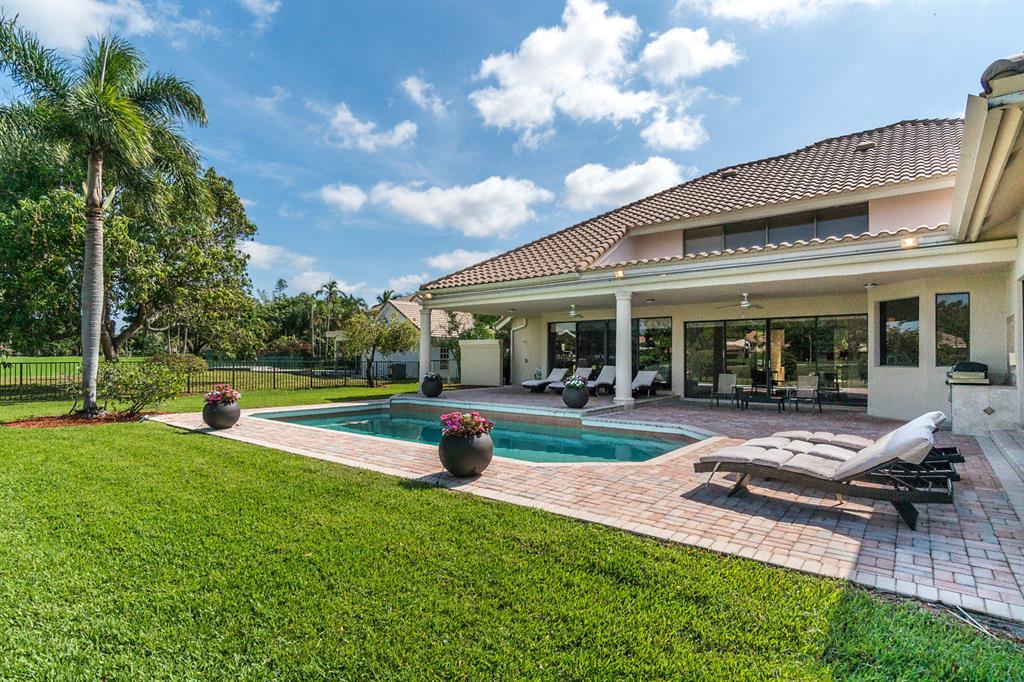 Custom estate situated on the 1st hole of acclaimed Broken Sound Country Club. As you enter the 1 story home you are greeted by endless Golf & Lake Vistas from the Family Room, Kitchen, and Master Bedroom. Natural light reveals real hardwood floors complemented by contrasting marble throughout. The home was completely redone recently & features a new kitchen with quartz counters & marble back splash, white kitchen cabinets, new appliances including a breakfast area highlighted by seamless bay windows. The master suite boasts separate tub & shower and his and her sinks. Other features include redone bathrooms, closet built-ins, smooth coated walls & ceilings, designer wall paper, and custom light fixtures. Fabulous outdoor living with screened in and op patio and enormous yard space.