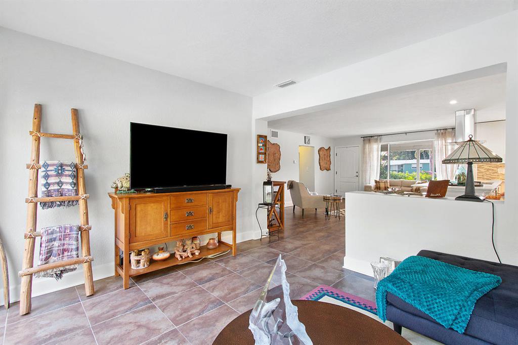This perfect gem of a home is updated and ready for a new owner. The kitchen was recently renovated and opened to the living area. It features high end cabinets, quarts counter tops and stainless steal appliances. The living area has been expanded and give you plenty of room for family and friends. Both bedrooms are very large and have walk-in closets. The master has an additional bonus room with a wood burning fireplace. This room can easily be converted to a 3rd bedroom if needed. Out back you will find a tropical paradise with a large pool, new deck and tiki bar that is fantastic for entertaining guest. The windows and doors are impact rated for peace of mind. Third bedroom is converted to workout room. All three schools are ''A'' Rated. Don't miss the opportunity