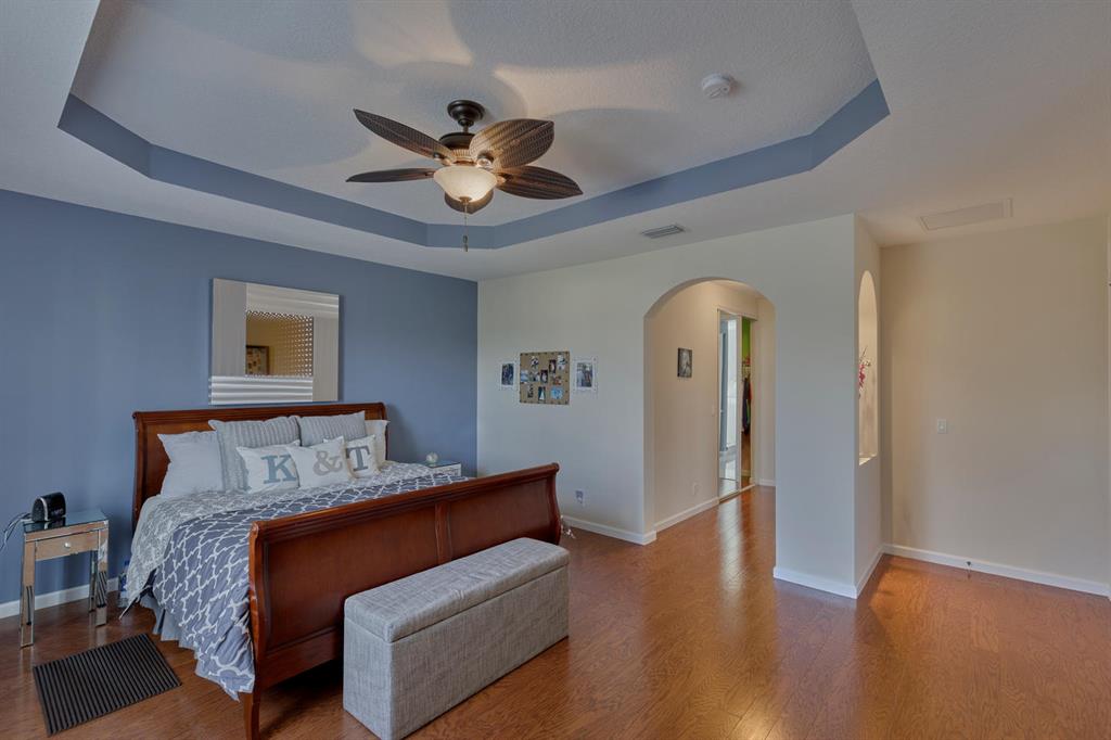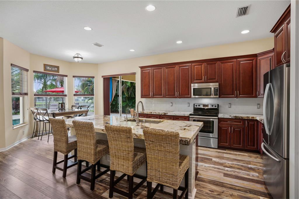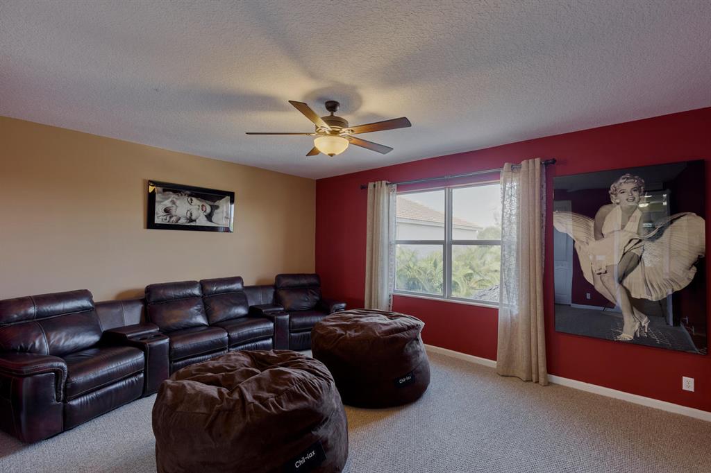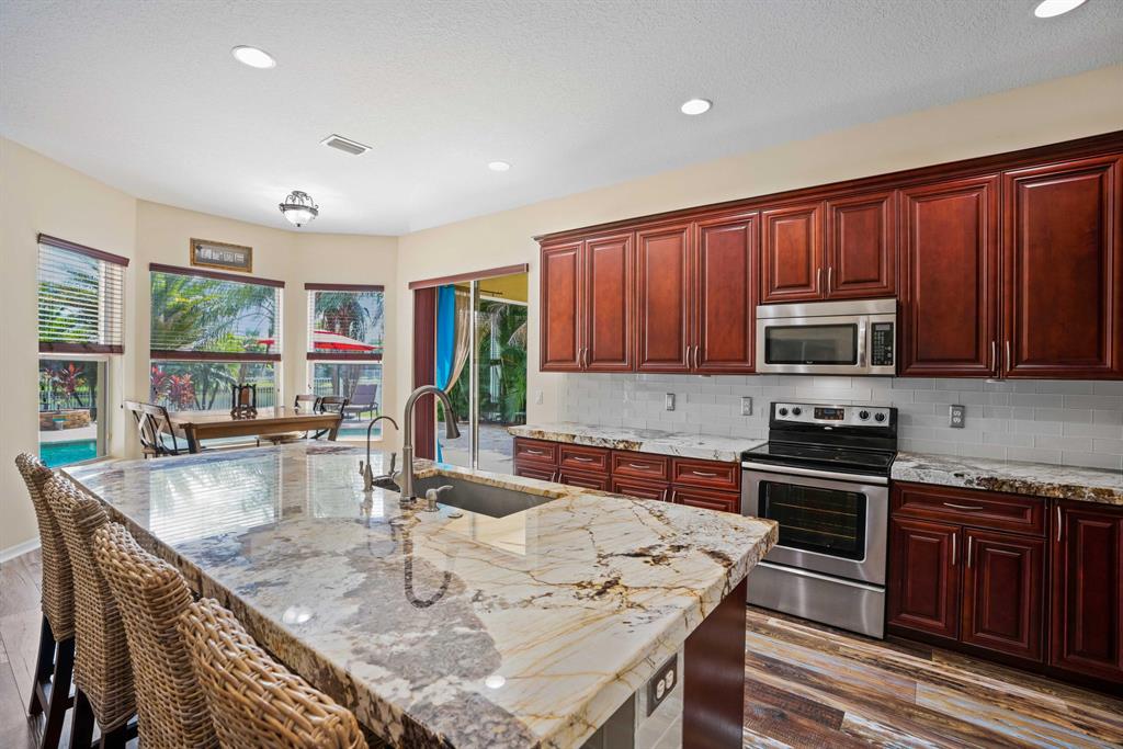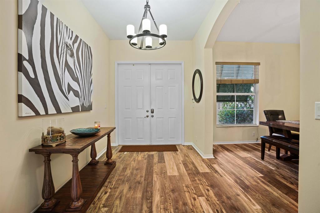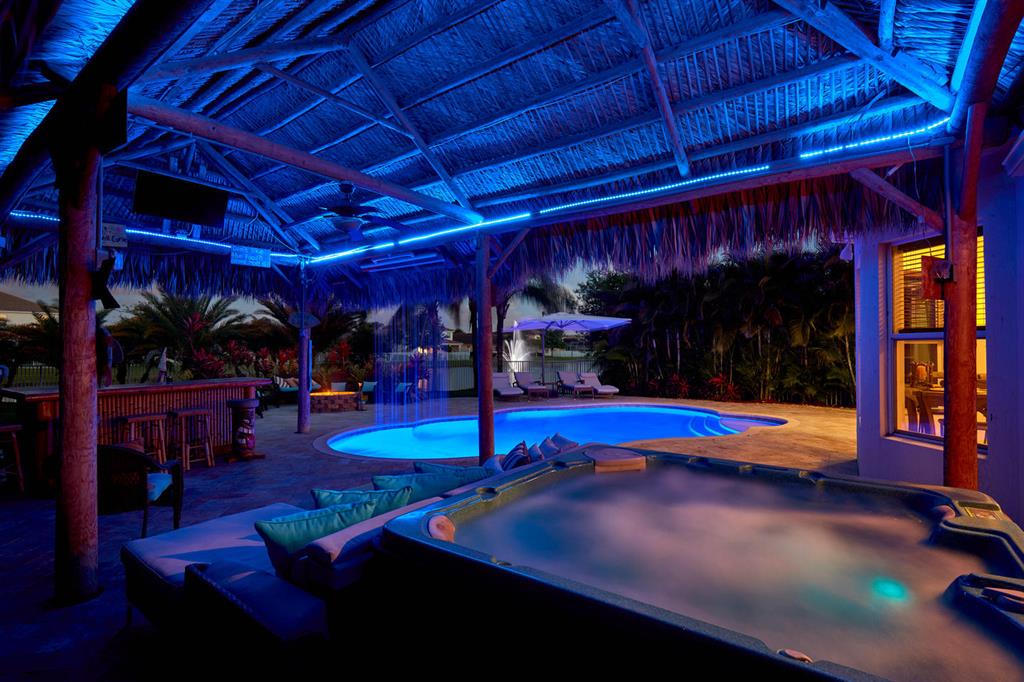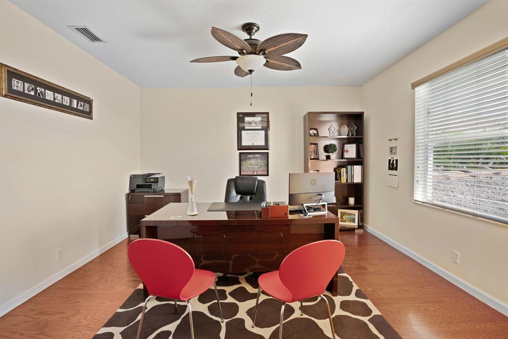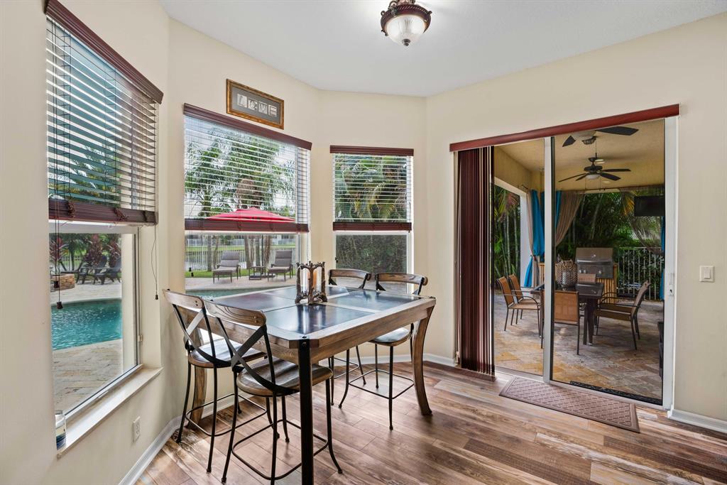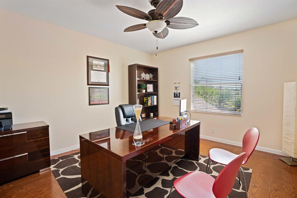 LARGEST LOT IN COMMUNITY .25 ACRES. THE BACK YARD IS A PRIVATE OASIS WITH LUSH LANDSCAPING, A HUGE TIKI HUT WITH CUSTOM TIKI BAR, HOT TUB, LED LIGHTS AND AMAZING WATERFALL FROM THE TOP OF THE TIKI HUT INTO THE POOL. THE HOME ALSO OFFERS A NEWER KITCHEN AND COMPLETELY REMODELED MASTER BATH. THIS HOME IS MOVE IN READY JUST BRING YOUR TOOTH BRUSH. GREAT LOCATION, ''A'' RATED SCHOOLS AND CLOSE PROXIMITY TO WELLINGTON. METAL ROOF, NEW HIGH EFF A/C, SALT WATER POOL, WOOD FLOORS IN MASTER, 3 CAR GARAGE AND OFFERS LARGE OPEN FLOOR PLAN. THERE IS 5 BEDROOMS AND A OFFICE OR NURSERY CONNECTED TO MASTER BEDROOM.