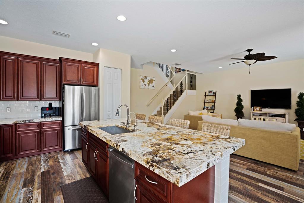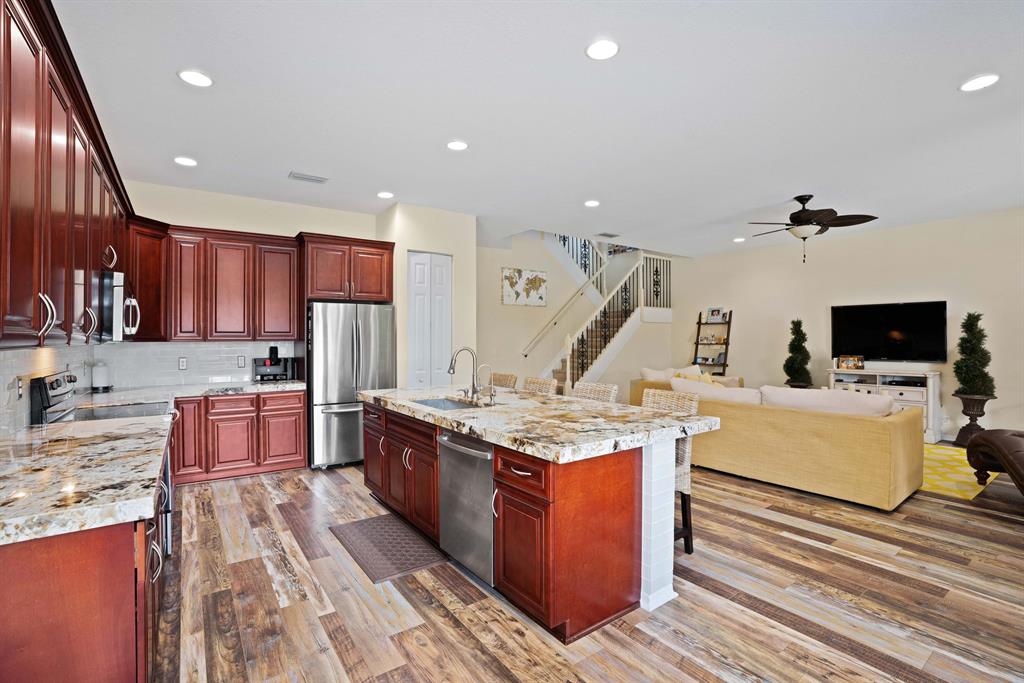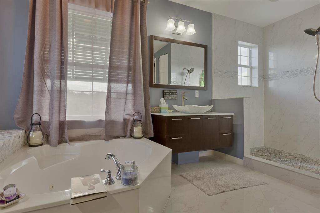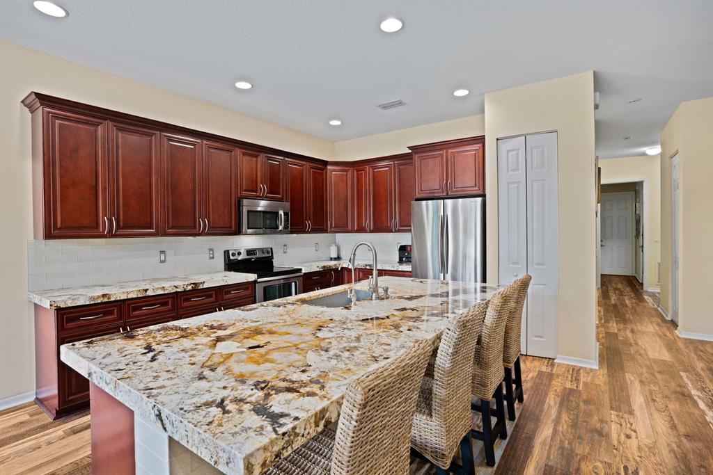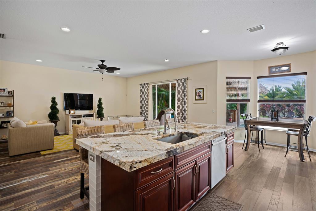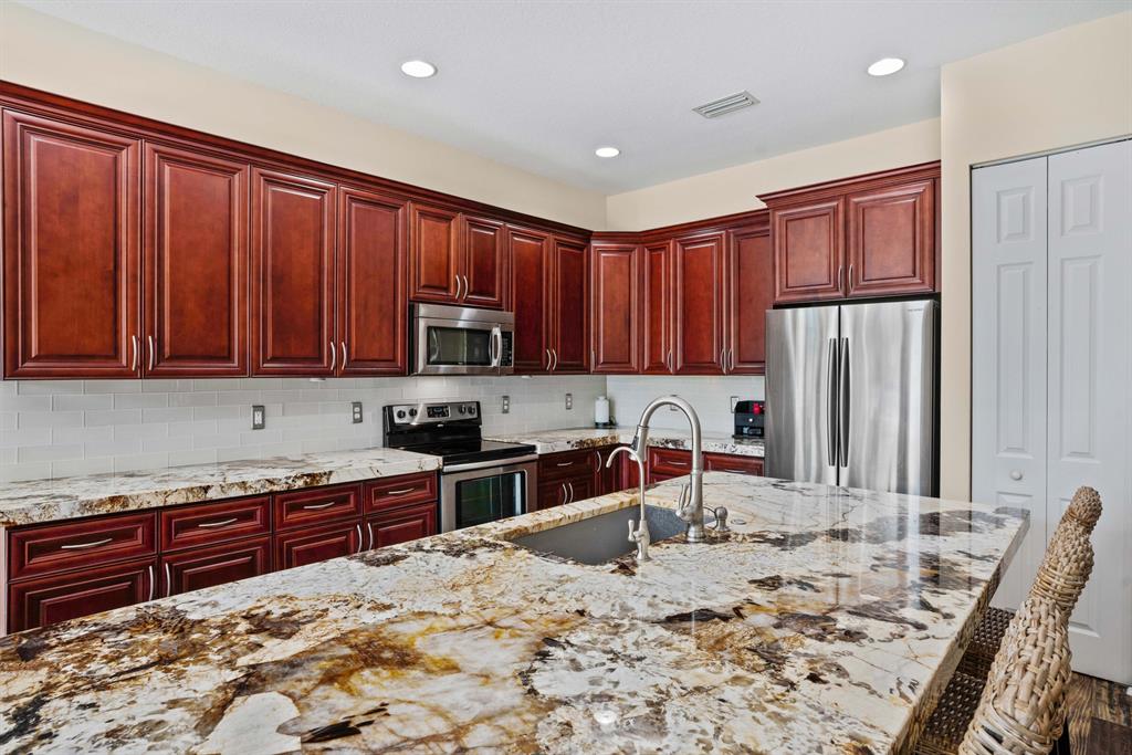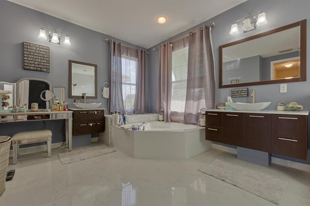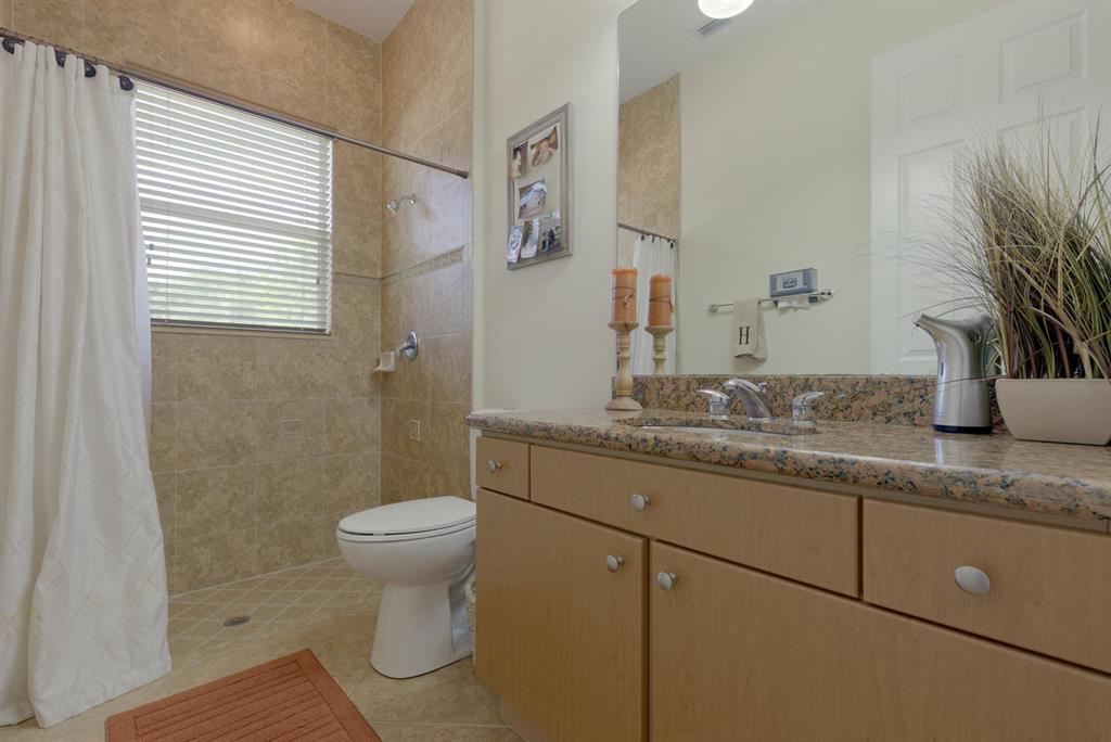 LARGEST LOT IN COMMUNITY .25 ACRES. THE BACK YARD IS A PRIVATE OASIS WITH LUSH LANDSCAPING, A HUGE TIKI HUT WITH CUSTOM TIKI BAR, HOT TUB, LED LIGHTS AND AMAZING WATERFALL FROM THE TOP OF THE TIKI HUT INTO THE POOL. THE HOME ALSO OFFERS A NEWER KITCHEN AND COMPLETELY REMODELED MASTER BATH. THIS HOME IS MOVE IN READY JUST BRING YOUR TOOTH BRUSH. GREAT LOCATION, ''A'' RATED SCHOOLS AND CLOSE PROXIMITY TO WELLINGTON. METAL ROOF, NEW HIGH EFF A/C, SALT WATER POOL, WOOD FLOORS IN MASTER, 3 CAR GARAGE AND OFFERS LARGE OPEN FLOOR PLAN. THERE IS 5 BEDROOMS AND A OFFICE OR NURSERY CONNECTED TO MASTER BEDROOM.