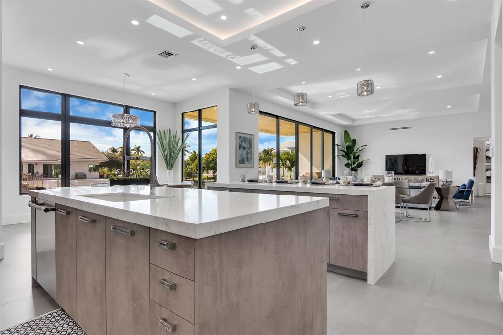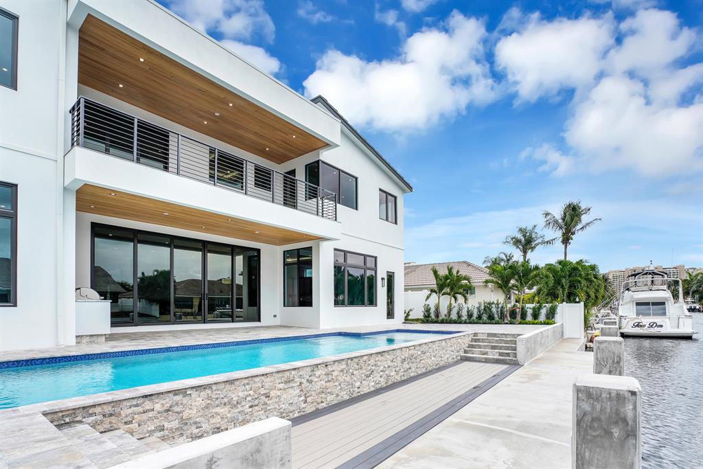 Bring your 85 ft yacht to this brand new No Fixed Bridge. Boca Raton Deepwater Estate. South facing in the rear on large turn basin. 6 Bedrooms / 6.5 Bathrooms, large upstairs laundry room and elevator ready. Quality custom home; built by Charles Thomas Builders CTB.