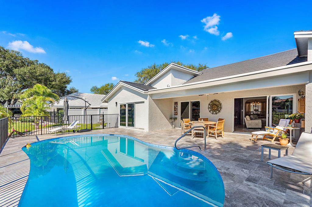 Beautifully renovated and upgraded lakefront pool home! Wide open, light, bright split floor plan. Impact windows and doors throughout. Soaring ceiling in the kitchen family room area. Custom cabinets, granite counter tops, SS appliances and marble back splash highlight the kitchen. Marble floors throughout the common areas. Brand new concrete tile roof. Incredible pool/patio area featuring gorgeous marble deck, refurbished pool (new polished glass tile and diamond brite surface) and panoramic views. Wait until you see the theater room. Bedroom number four makes a fantastic office with outstanding view! New wood floors in Master & Theater room. You just can't beat Camino Lakes! Just a 15 minute bike ride to the beach and downtown. All A rated schools! Move fast on this one!