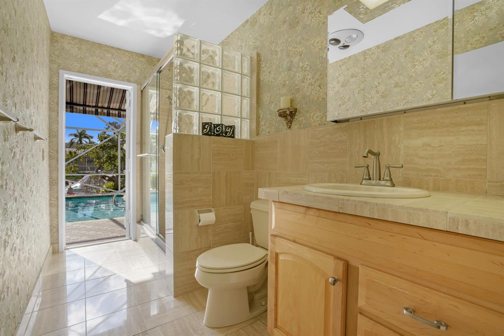Bring your 50 ft. yacht to this nicely updated no fixed bridge deepwater Boca Estate. With South facing in the rear for your all year pool enjoyment. Large patio and new batter piled and capped seawall and dock