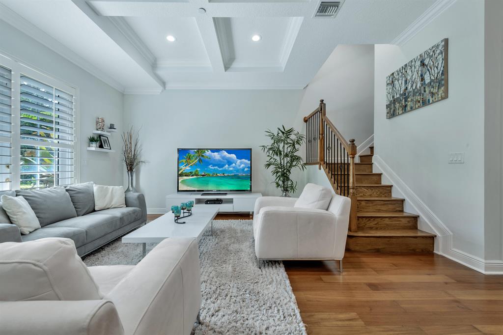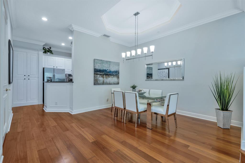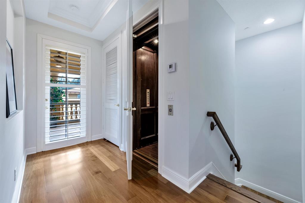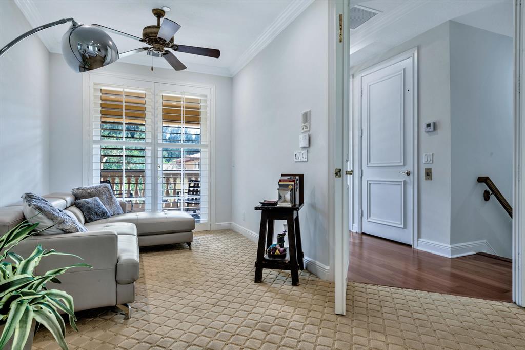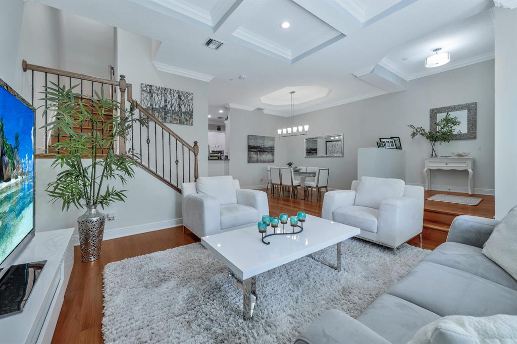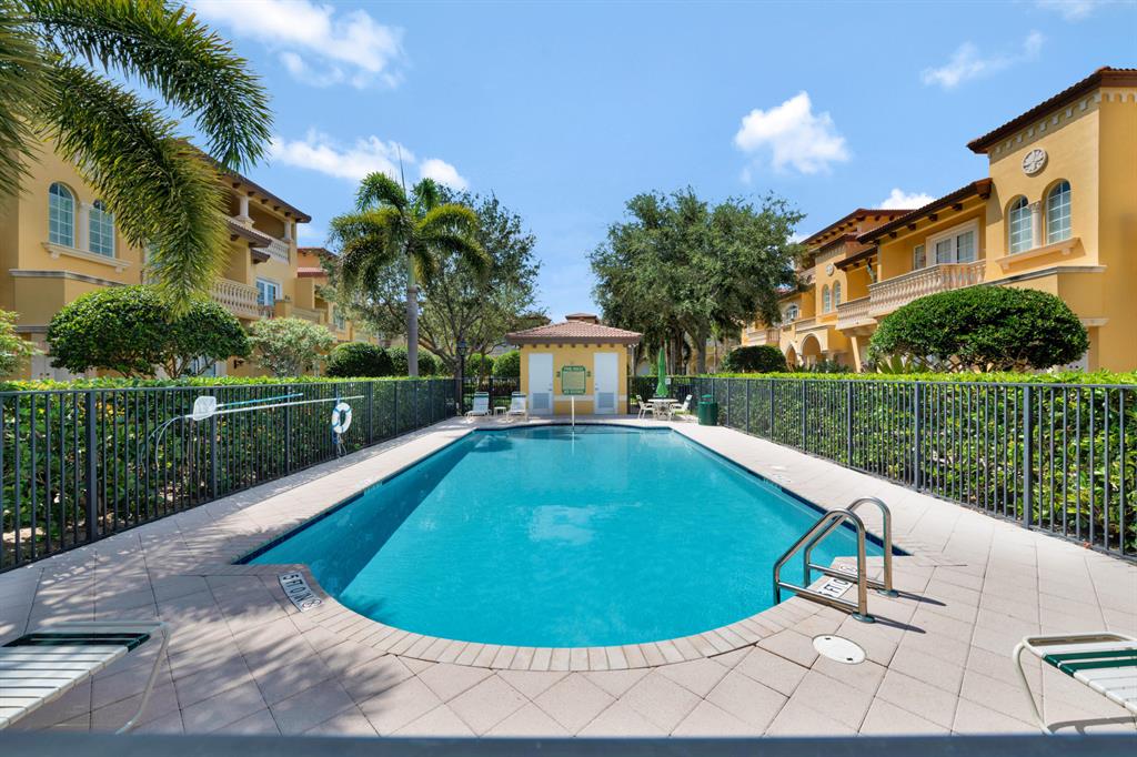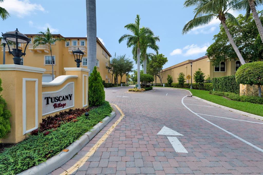 This Mediterranean inspired gated community is located in the heart of boca just minutes from Mizner Park and the beach!Its lush exterior and skyline can be seen from any of its multiple balconies.This immaculate and spacious 3 story townhouse boasts over 2900 sqft of living space w/12ft coffered ceilings and crown molding;recessed led lighting throughout home makes this split floor plan feel bright and inviting.Wood flooring in living areas.Upgraded kitchen w/granite countertops/stainless steel appliances.Take your elevator to the 3rd floor master suite w/sitting area or office;2 en-suite bedrooms on the 2nd floor w/separate living room.All bathrooms have upgraded cabinetry w/granite countertops.Impact windows and doors throughout.Come and see the most pristine unit in Tuscany Village!