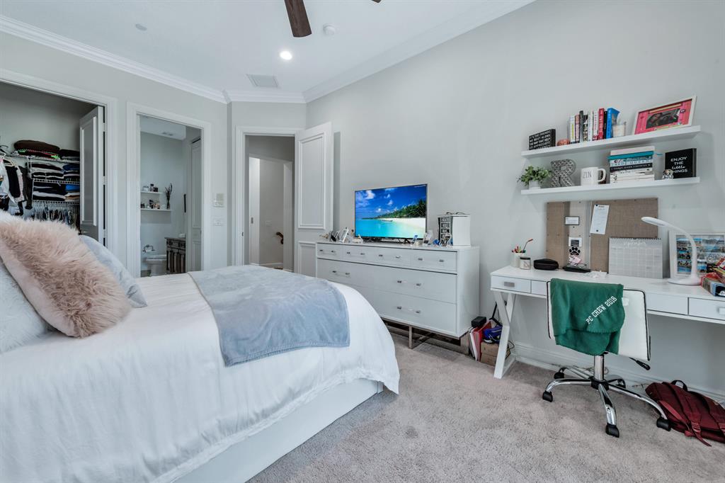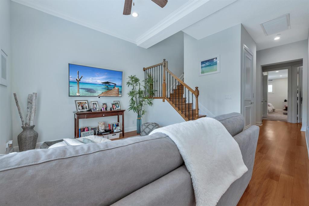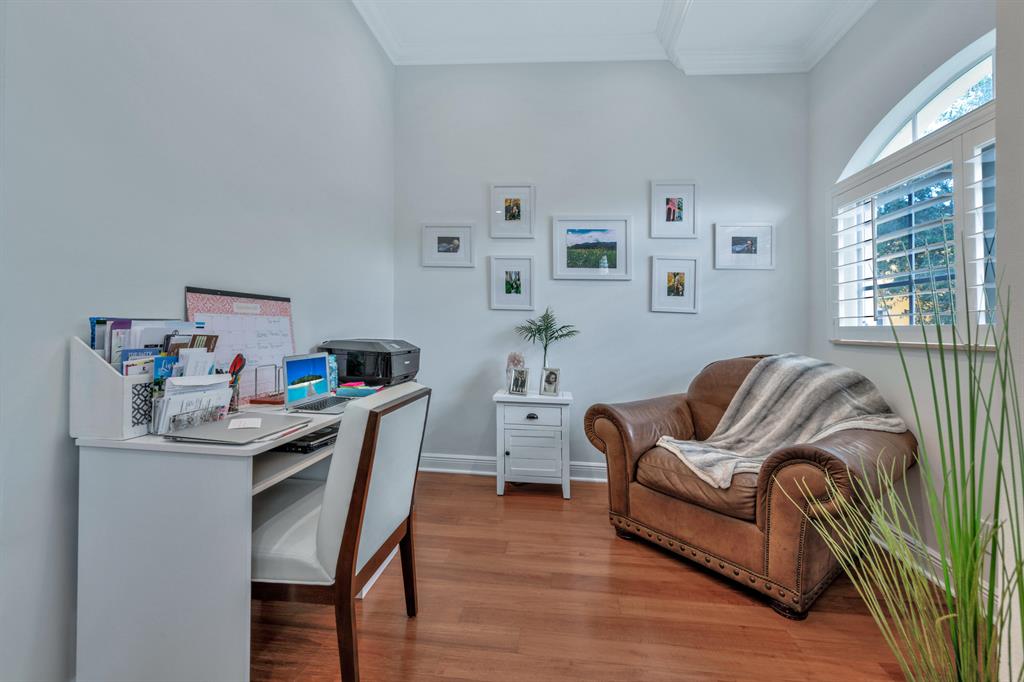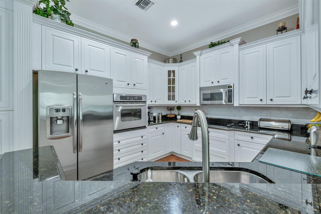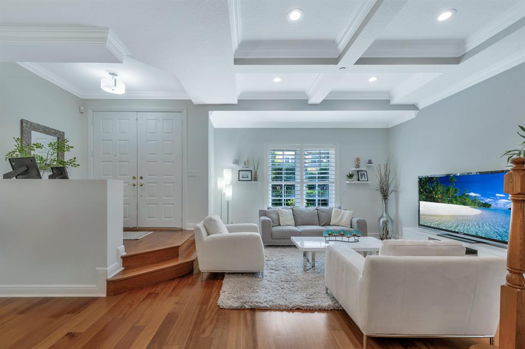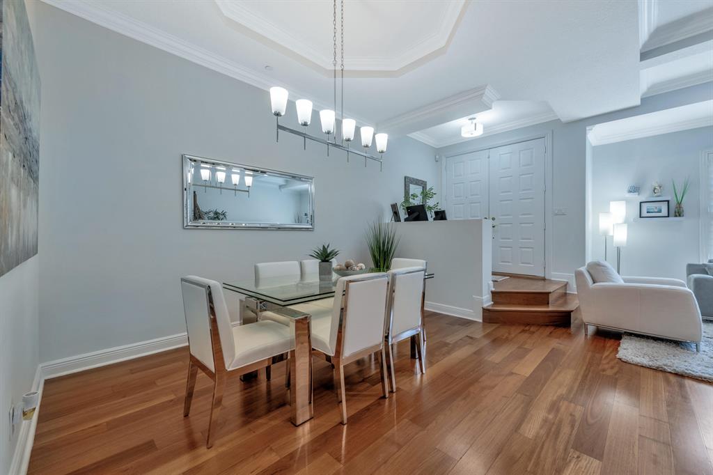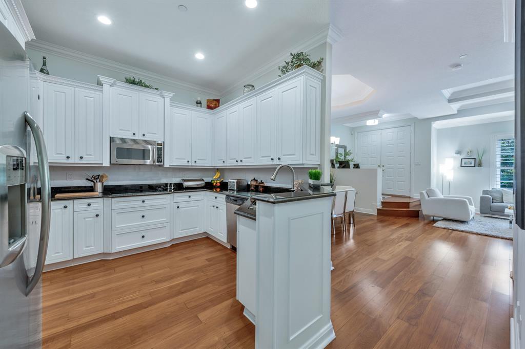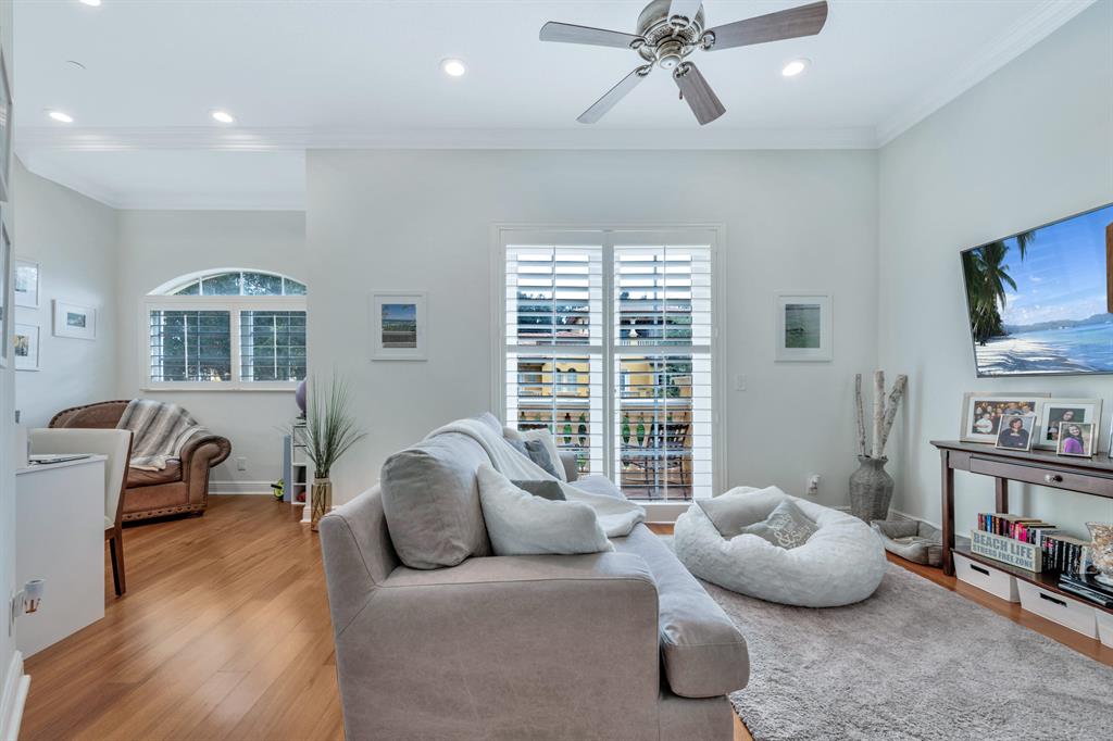 This Mediterranean inspired gated community is located in the heart of boca just minutes from Mizner Park and the beach!Its lush exterior and skyline can be seen from any of its multiple balconies.This immaculate and spacious 3 story townhouse boasts over 2900 sqft of living space w/12ft coffered ceilings and crown molding;recessed led lighting throughout home makes this split floor plan feel bright and inviting.Wood flooring in living areas.Upgraded kitchen w/granite countertops/stainless steel appliances.Take your elevator to the 3rd floor master suite w/sitting area or office;2 en-suite bedrooms on the 2nd floor w/separate living room.All bathrooms have upgraded cabinetry w/granite countertops.Impact windows and doors throughout.Come and see the most pristine unit in Tuscany Village!