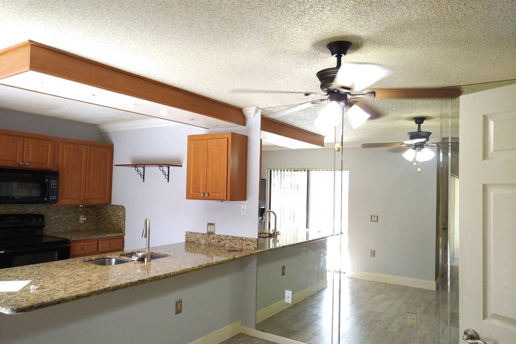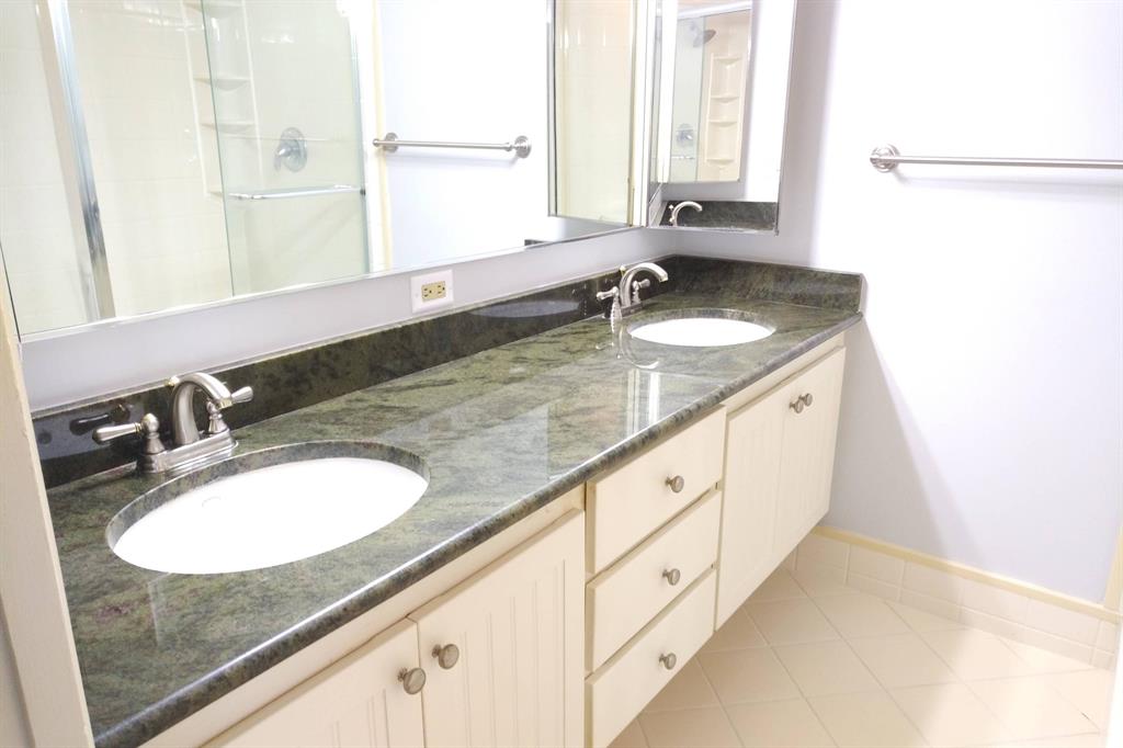 Beautifully updated unit with shaded view. Parking at your door. Cove molding, indirect lighting LR/Kit. New vertical blinds. Plantation shutters upstairs. Current fridge works but makes noise. Other appliances newer. Range has double oven. Microwave, Granite counters. 2 of 3 baths renovated. Downstairs fully tiled with wood-look ceramic/porcelain tile, upstairs carpeted. Courtyard Entrance freshly painted. Shows very well. SMALL PICKUP NON-COMM. TRUCK OK PER MGMT. 1 pet per updated Rules/Regs attached and a list of non-allowed dogs. Owner has pd spec assess for new fence. Appl attached. Easy show! ORCHID ON PATIO WILL BE PROFESSIONALLY REMOVED. All else stays. Room sizes approx. Please verify if exact measurement required. Sold AS IS
