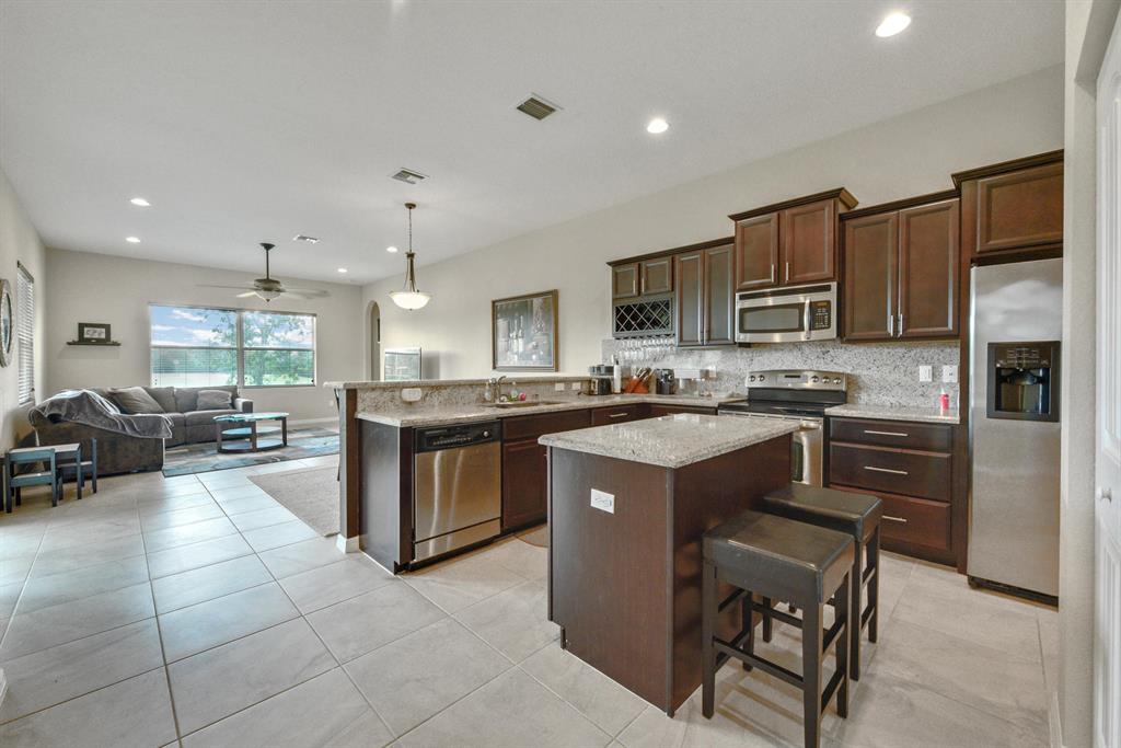 Like new, DR Horton built home in Wellington community which is located within an excellent school zone! Come inside and be greeted by spacious living areas, soaring volume ceilings and a very desirable 3-way bedroom split floor plan! This beautiful home offers 4 spacious bedrooms, plus a den, formal living and dining rooms, a large family room, a wonderful covered patio and an expansive backyard. The gorgeous kitchen opens to the large family room and boasts real wood cabinetry, granite counter tops and stainless steel appliances. The master suite has 2 walk-in closets and a master bathroom with a gorgeous Roman tub & his and hers sinks. All of this located in Whispering Woods which is centrally located in an excellent school zone, just minutes to the Turnpike, I-95, Downtown West Palm