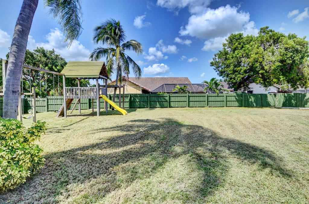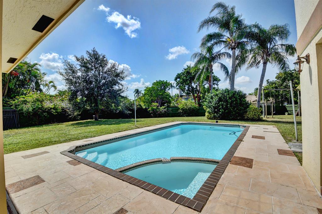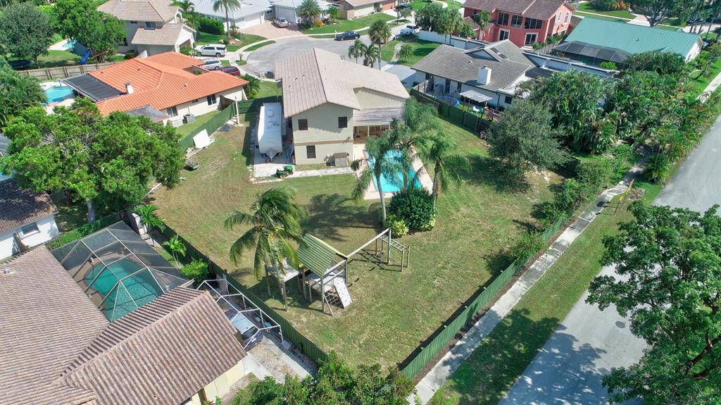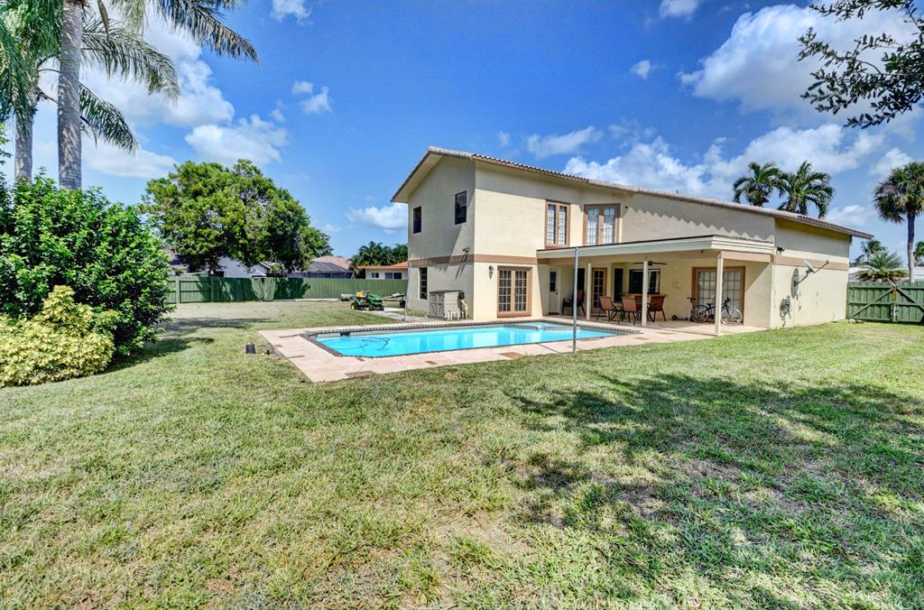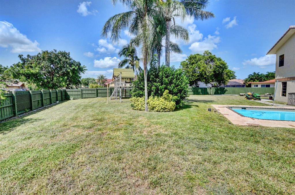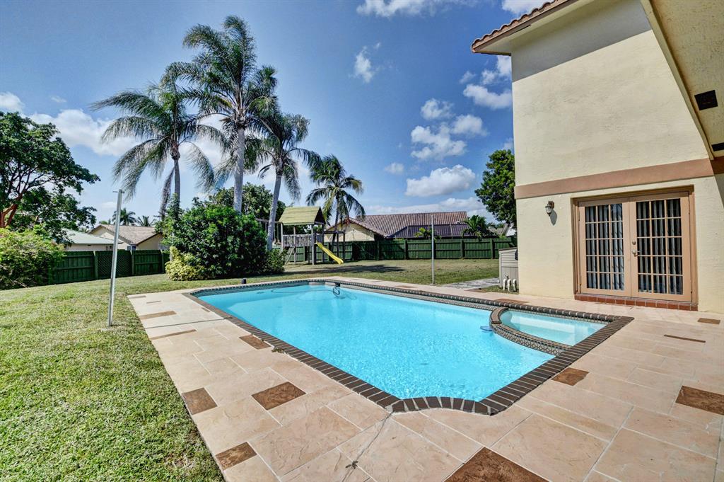 Almost a 1/2 acre ina cul-de-sac lot located in the heart of Boca Raton. Four bedrooms,three bathrooms ,Family & Living Room, Formal Dining Room and Breakfast area, Cabana Bath. Guest bedroom and full bath downstairs. Open pool overlooking large fenced yard with swing set and plenty of room for a small boat and RV camper. Both Air condtioners were recently replaced. Homeowner Association fees (only $130 per year to Boca Del Mar Improvement Association. Boca Rio is located within an amazing school district! All ages & pet friendly.