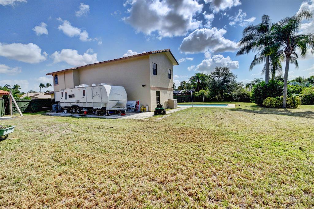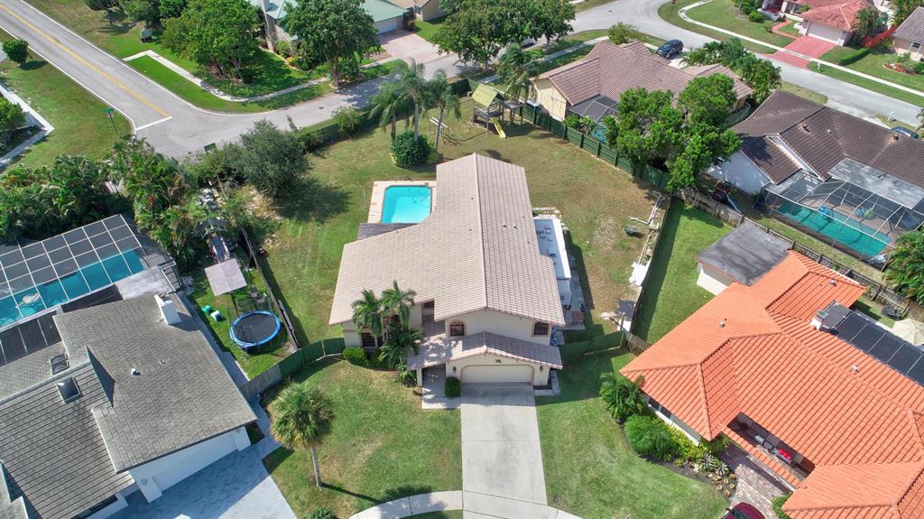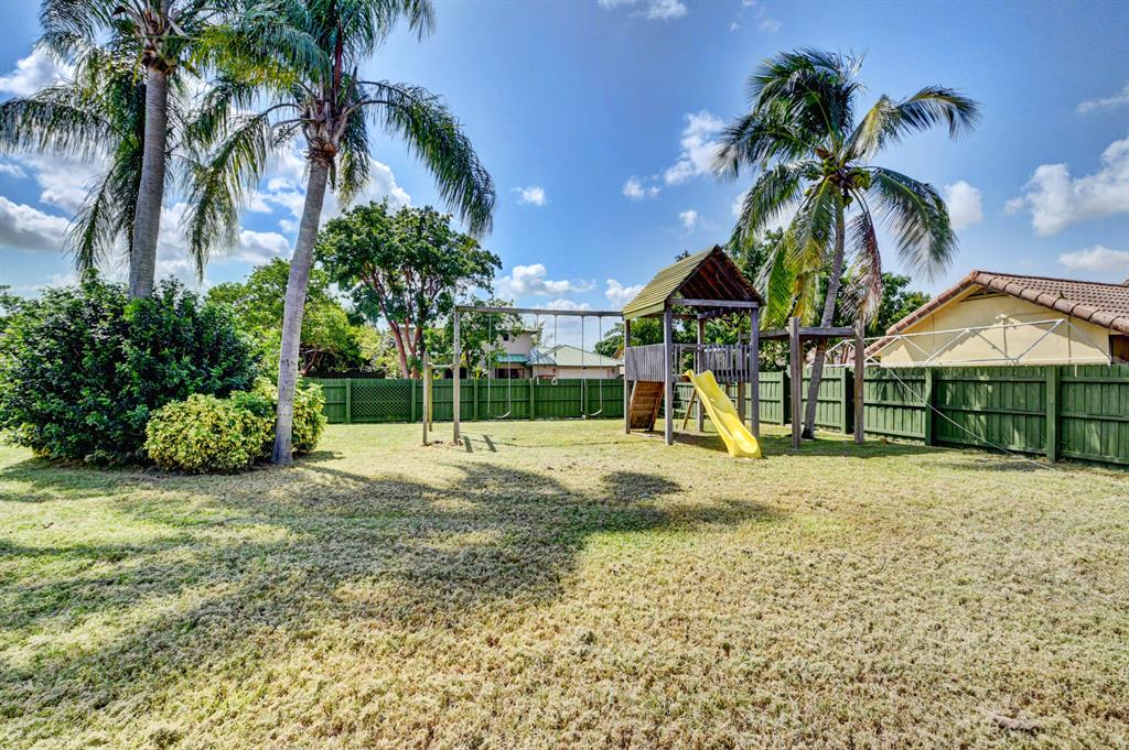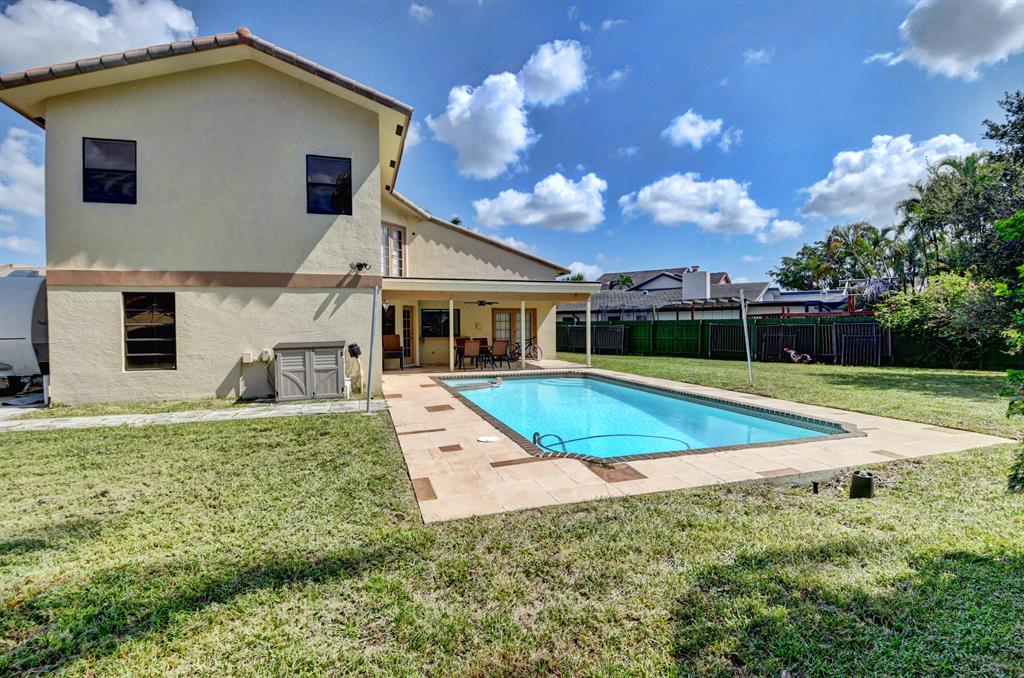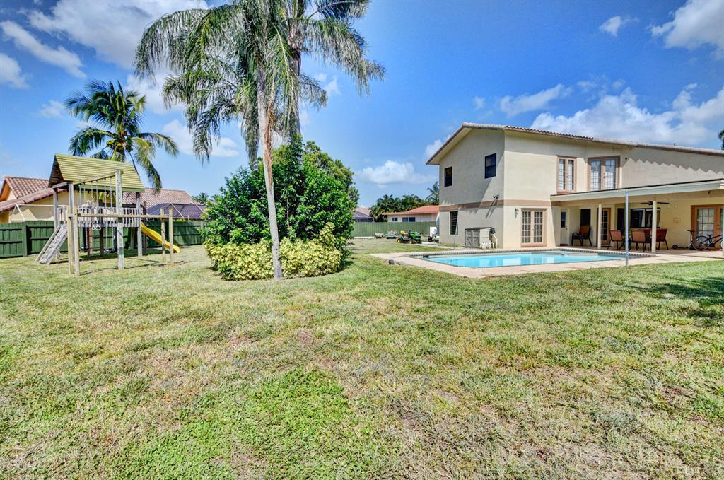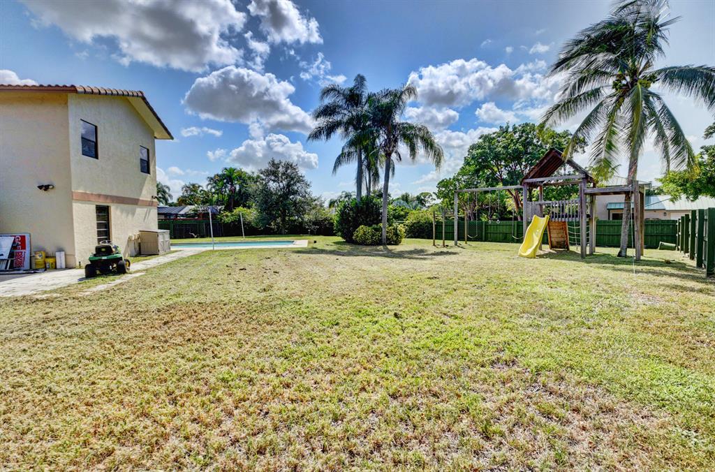Almost a 1/2 acre ina cul-de-sac lot located in the heart of Boca Raton. Four bedrooms,three bathrooms ,Family & Living Room, Formal Dining Room and Breakfast area, Cabana Bath. Guest bedroom and full bath downstairs. Open pool overlooking large fenced yard with swing set and plenty of room for a small boat and RV camper. Both Air condtioners were recently replaced. Homeowner Association fees (only $130 per year to Boca Del Mar Improvement Association. Boca Rio is located within an amazing school district! All ages & pet friendly.