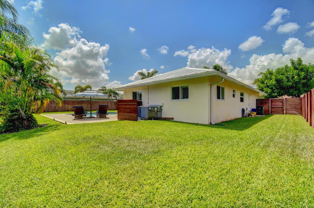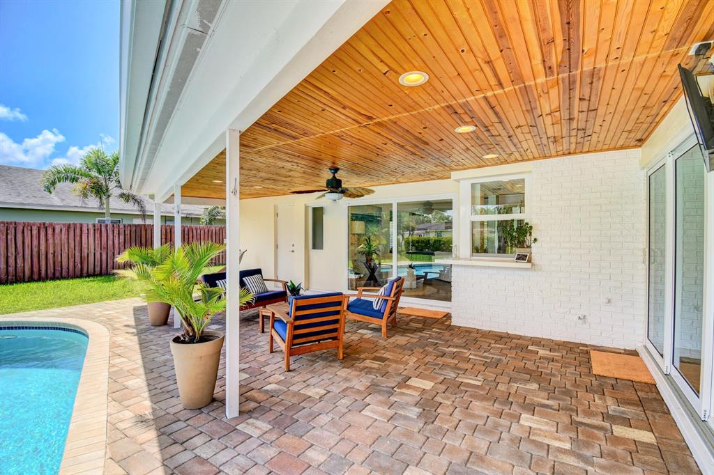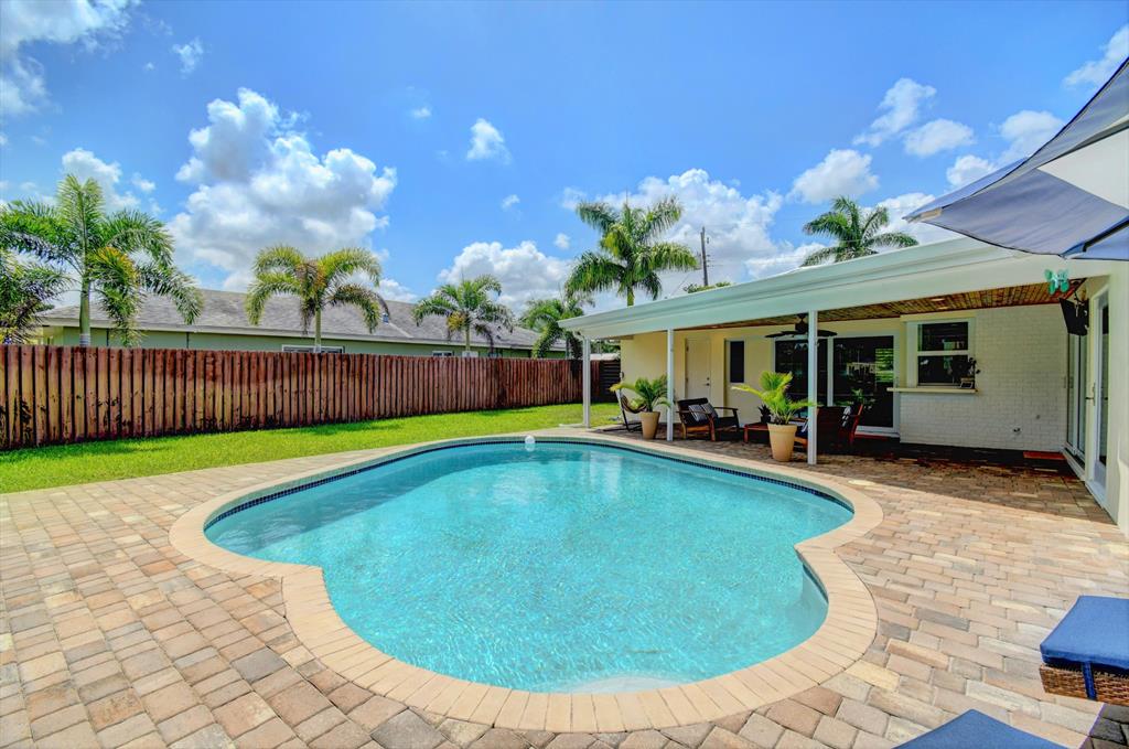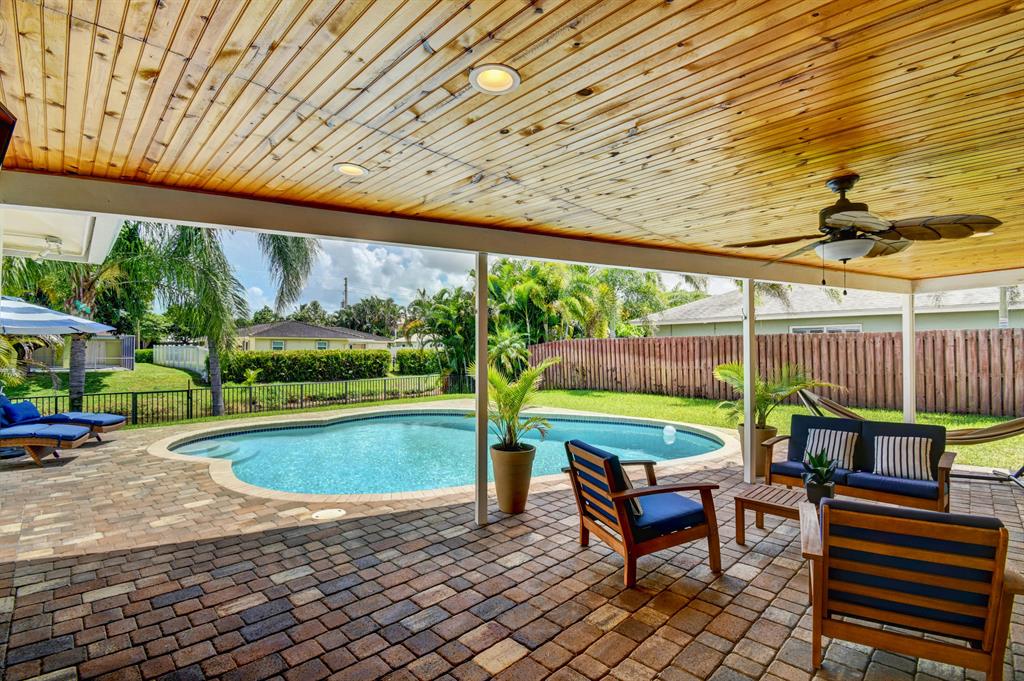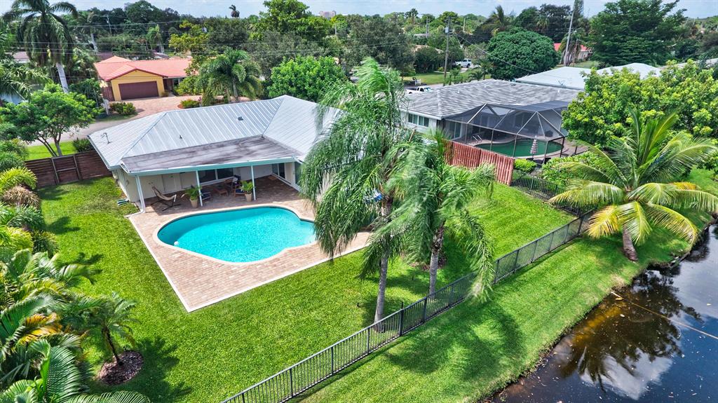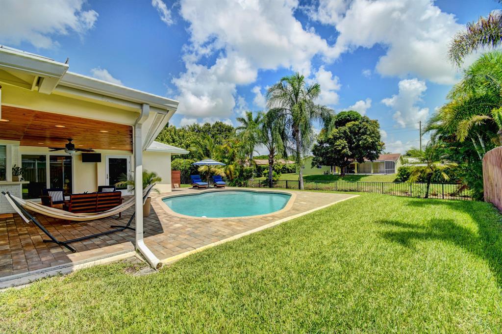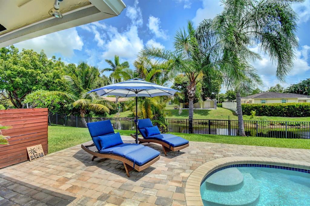 You won't believe your eyes. This nearly perfect East Boca home is waiting for you! Filled with love, charm and gorgeous updates throughout. New stainless steel appliances, white quartz countertops, a built-in wine cooler bar area. Two spa-like baths with rich marble tile in the guest shower. Impact windows and luxurious plantation shutters throughout, metal roof 2011. Smart home features include a thermostat, security system and doorbell camera. Step outside to enjoy summer breezes on the covered patio adorned with a rich tongue and groove ceiling. Splash around in the salt water pool with color changing LED lights. Dramatic landscape lighting fills the night sky. Have fun paddle boarding from your backyard to Lake Floresta. Serene views, a great home and in a great school district. WOW!