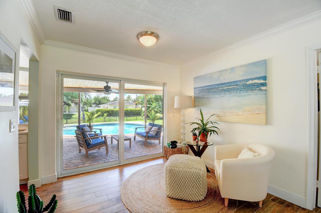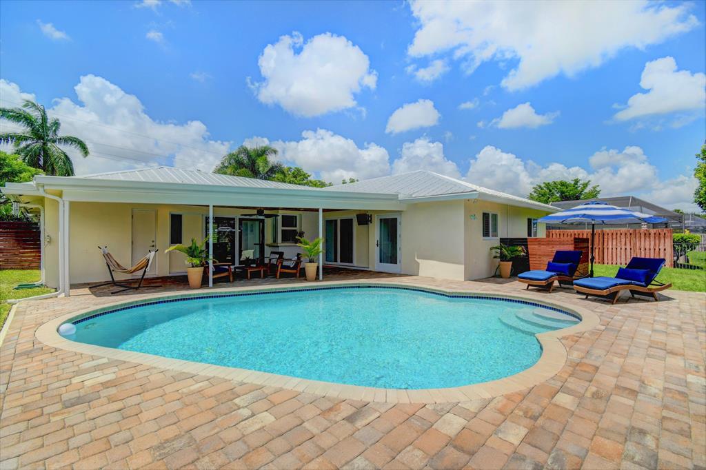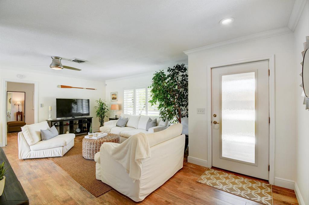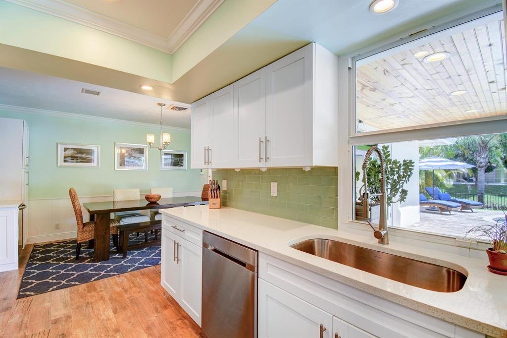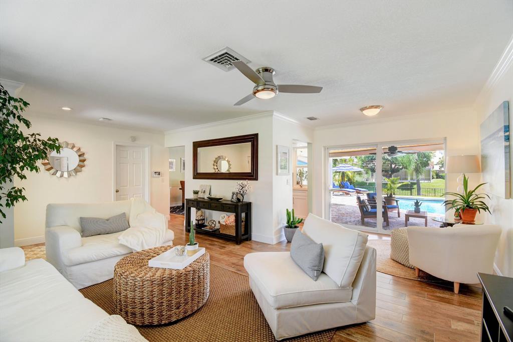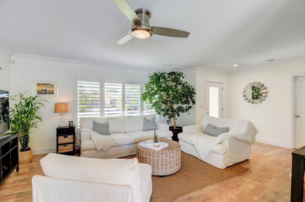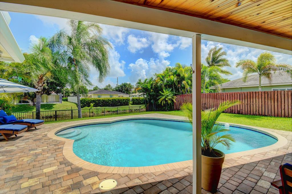 You won't believe your eyes. This nearly perfect East Boca home is waiting for you! Filled with love, charm and gorgeous updates throughout. New stainless steel appliances, white quartz countertops, a built-in wine cooler bar area. Two spa-like baths with rich marble tile in the guest shower. Impact windows and luxurious plantation shutters throughout, metal roof 2011. Smart home features include a thermostat, security system and doorbell camera. Step outside to enjoy summer breezes on the covered patio adorned with a rich tongue and groove ceiling. Splash around in the salt water pool with color changing LED lights. Dramatic landscape lighting fills the night sky. Have fun paddle boarding from your backyard to Lake Floresta. Serene views, a great home and in a great school district. WOW!