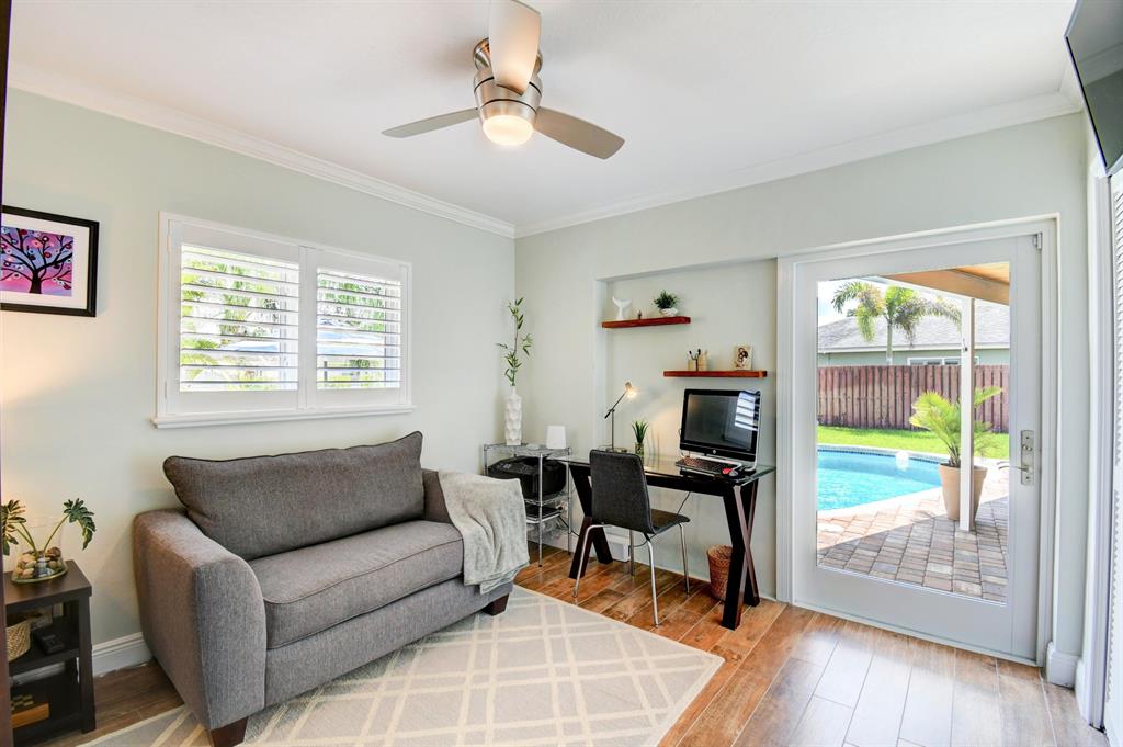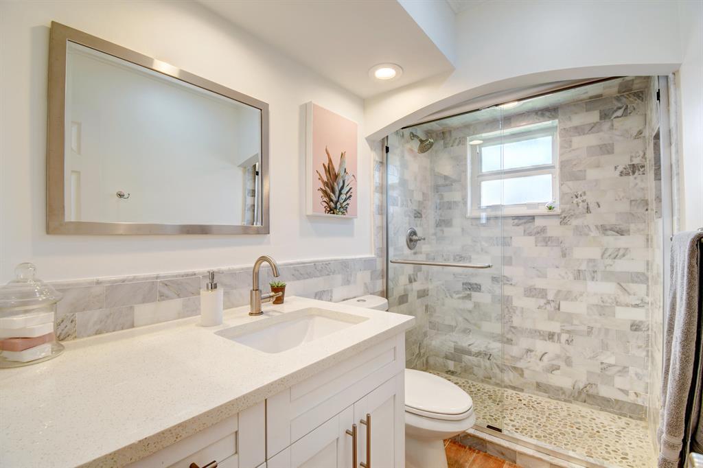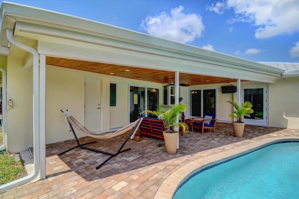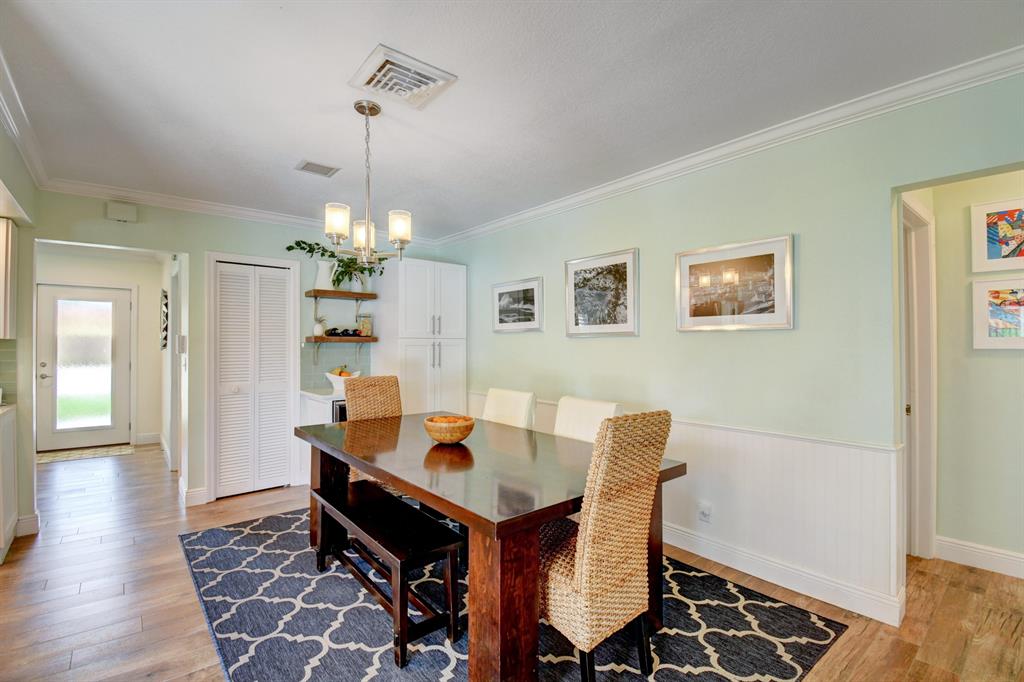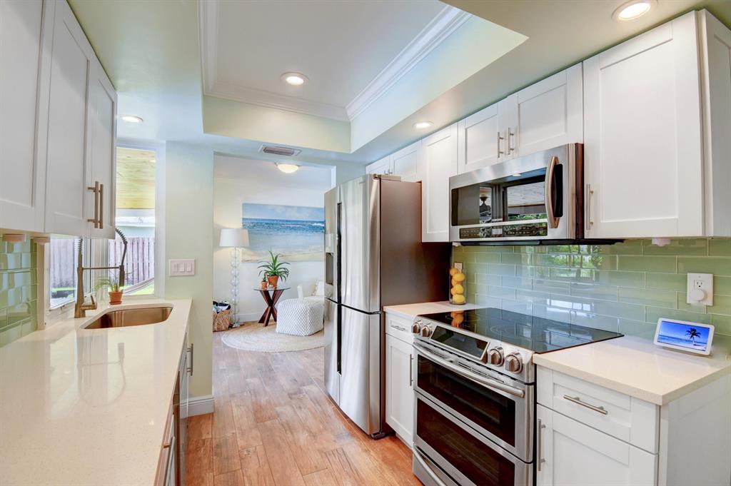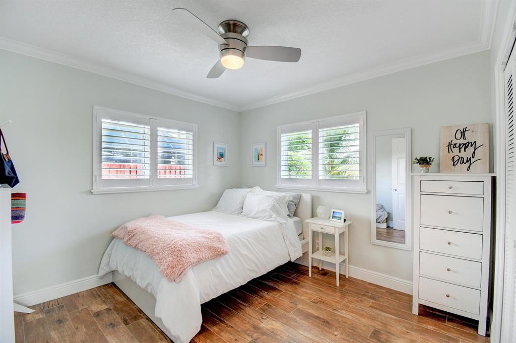You won't believe your eyes. This nearly perfect East Boca home is waiting for you! Filled with love, charm and gorgeous updates throughout. New stainless steel appliances, white quartz countertops, a built-in wine cooler bar area. Two spa-like baths with rich marble tile in the guest shower. Impact windows and luxurious plantation shutters throughout, metal roof 2011. Smart home features include a thermostat, security system and doorbell camera. Step outside to enjoy summer breezes on the covered patio adorned with a rich tongue and groove ceiling. Splash around in the salt water pool with color changing LED lights. Dramatic landscape lighting fills the night sky. Have fun paddle boarding from your backyard to Lake Floresta. Serene views, a great home and in a great school district. WOW!