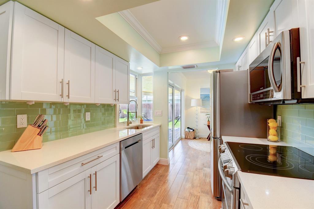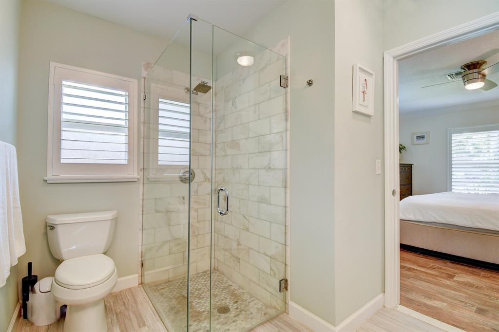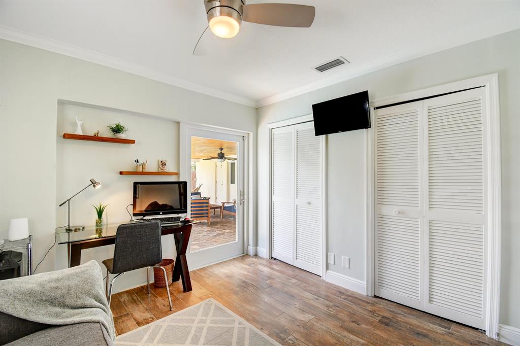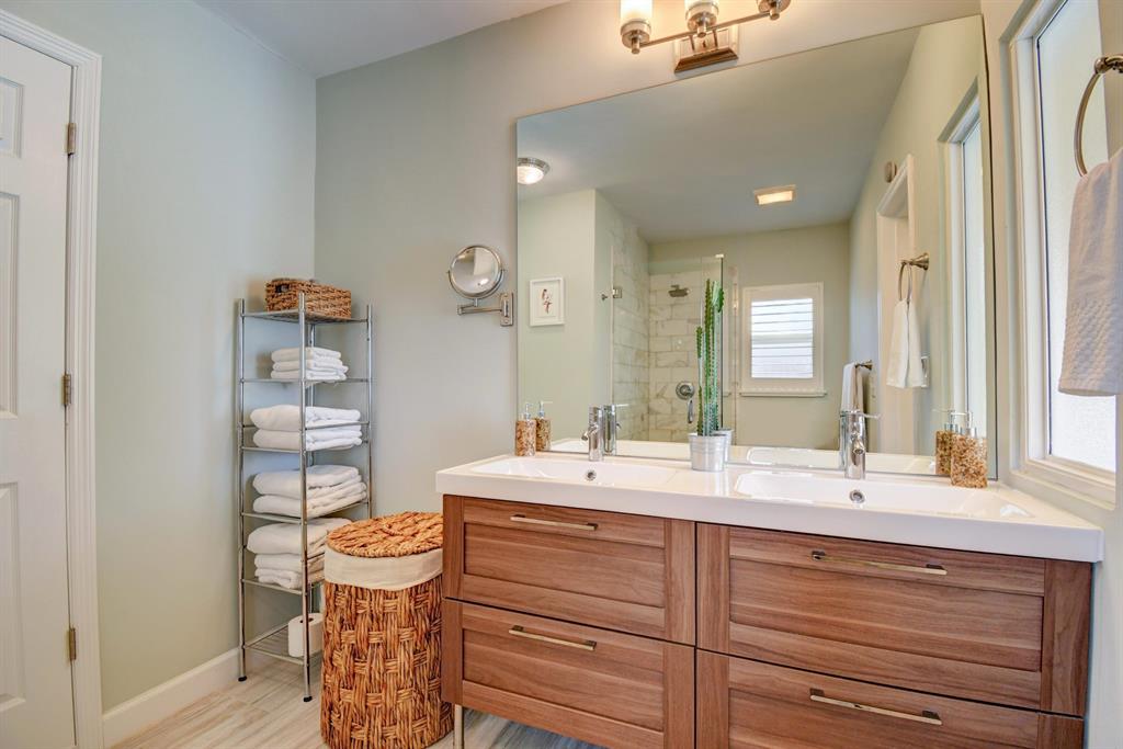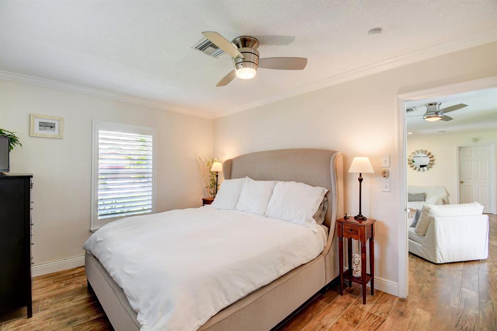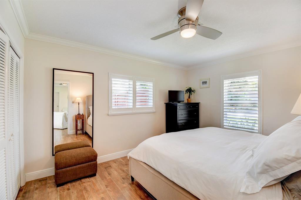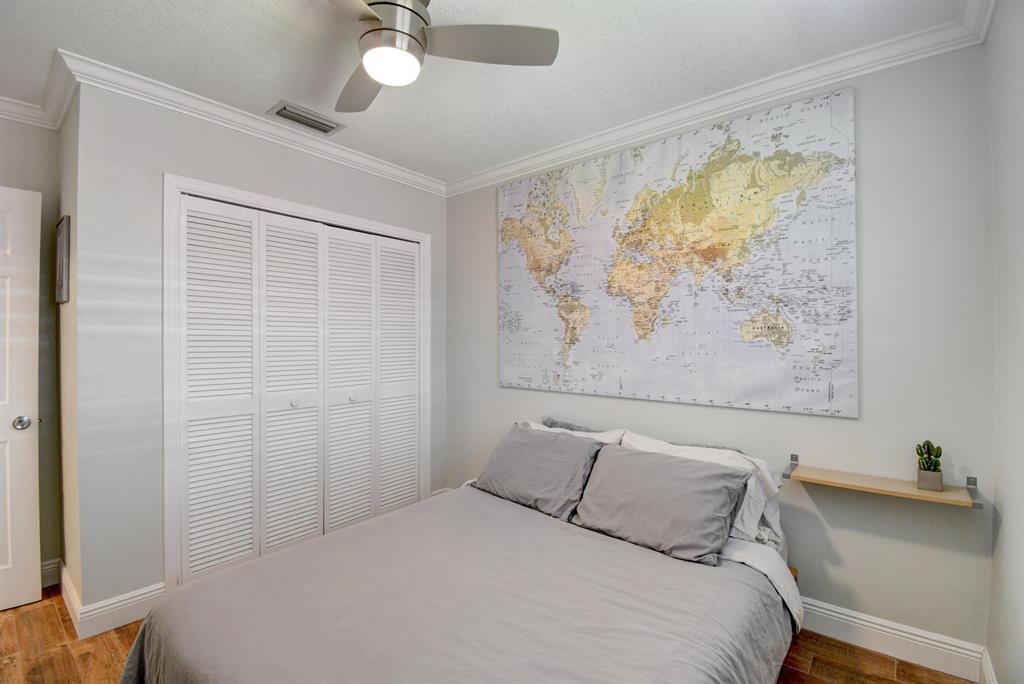 You won't believe your eyes. This nearly perfect East Boca home is waiting for you! Filled with love, charm and gorgeous updates throughout. New stainless steel appliances, white quartz countertops, a built-in wine cooler bar area. Two spa-like baths with rich marble tile in the guest shower. Impact windows and luxurious plantation shutters throughout, metal roof 2011. Smart home features include a thermostat, security system and doorbell camera. Step outside to enjoy summer breezes on the covered patio adorned with a rich tongue and groove ceiling. Splash around in the salt water pool with color changing LED lights. Dramatic landscape lighting fills the night sky. Have fun paddle boarding from your backyard to Lake Floresta. Serene views, a great home and in a great school district. WOW!