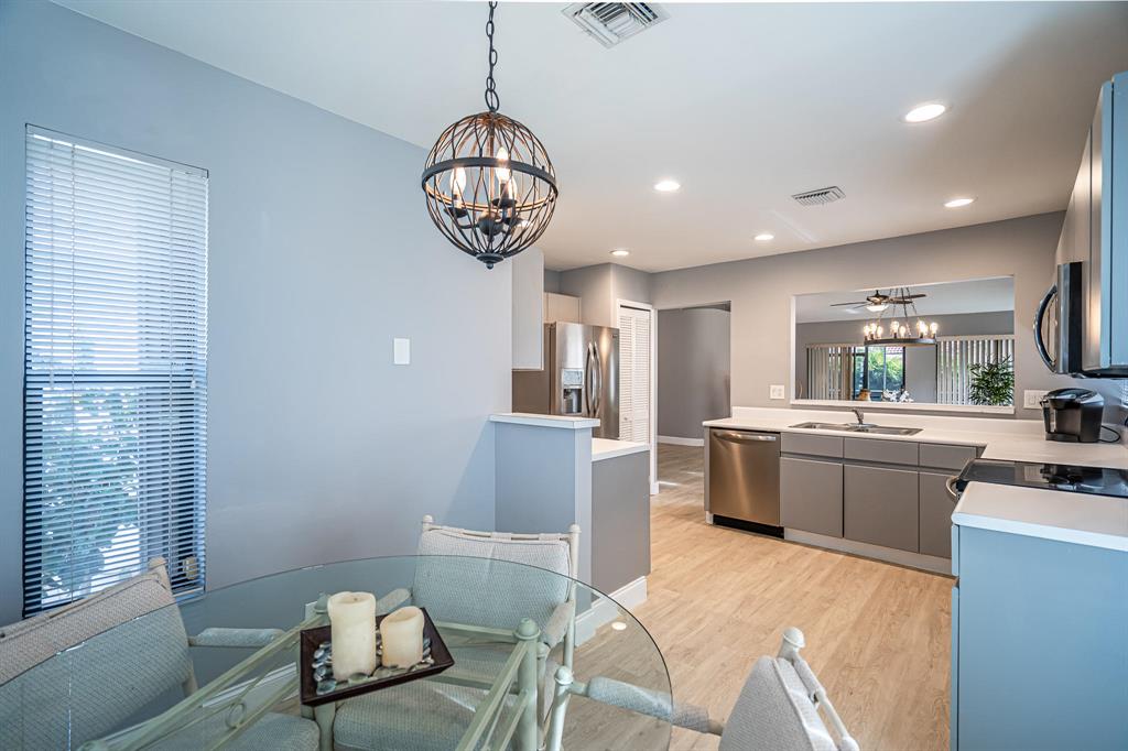 This 3 bedroom 2 bath Single Family Home in Mission Bay is defined by charm. Updated floors and vaulted ceilings throughout provide an expansive feel to this family oriented home. Entry to the screened in pool with a large wrap around patio is available from the large master bedroom or the living room making entertaining or your outside morning coffee easy. The master bedroom features a large walkin closet and an en-suite bath. Included in the low HOA are high-speed internet and cable, 24 hour patrolling community security, access to the club and its resort style saltwater pool, jacuzzi, sauna, state-of-the-art fitness center and poolside sports bar.