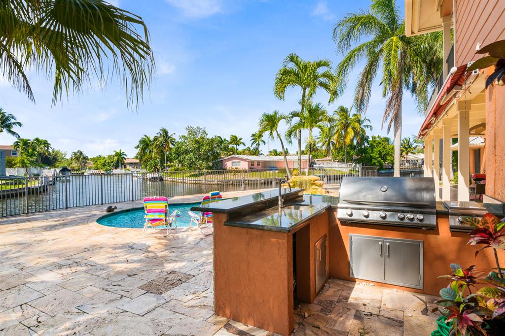 Fantastic location with great waterfront homes in east Boca! Fantastic water lot location with dockage, pool, newer pool deck, optional jacuzzi, built in grill... even a coy pond ! 189 feet on the water! 5 bedrooms & / or an extra office! 3.5 baths! Volume entrance, upgraded kitchen, stone floors, generous upper and lower balcony space.... a beautiful home on the Water!!! One full bedroom suite downstairs. Open eat-in kitchen. Water views of navigable intersecting canals throughout! East Boca with ocean breezes....