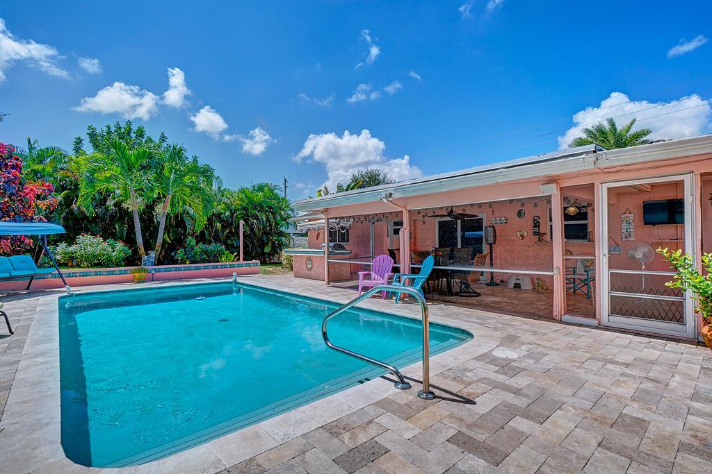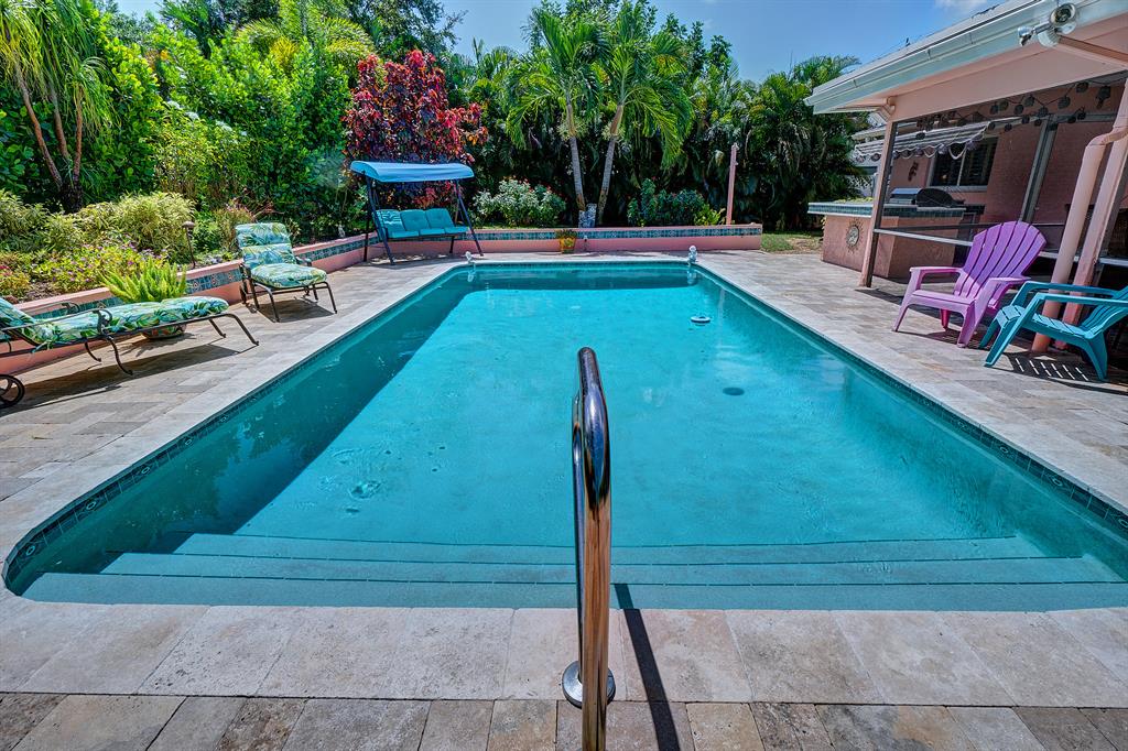 SINGLE STORY HOME 2 CAR GARAGE WITH ALL HURRICANE WINDOWS(EXCEPT GARAGE WINDOW) AND DOORS/ETCHED GLASS FRONT DOOR --A PRIVATE TROPICAL FENCED RESORT BACKYARD PARADISE W INGROUND RESURFACED POOL/NEW PAVERS AROUND POOL WITH OUTDOOR BARBEQUE/AWNING WITH LIGHTS/LED LIGHTING IN POOL/PROFESSIONALLY LANDSCAPED FRONT AND BACKYARD WITH IN -GROUND SPRINKLERS AND LANDSCAPE LIGHTING LARGE SCREENED PATIO AND LANAI WITH PAVERS -KITCHEN FEATURES GRANITE COUNTERS W/STAINLESS APPLIANCES/TILE ON DIAGONAL IN LIVING AREA WITH WORKING FIREPLACE IN LIVING ROOM PLANTATION SHUTTERS BAMBOO SHADES REVOVATED BATHROOMS WITH FRAMELESS SHOWER DOOR IN MASTER BATH SHOWER. CLOSE TO THE BEACH HIGHWAYS AND SHOPPING MUST SEE! FLAT ROOF BRAND NEW... LOADED WITH COMFORT & CHARM AND GLAMOR!