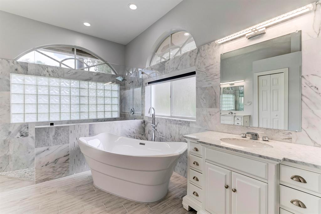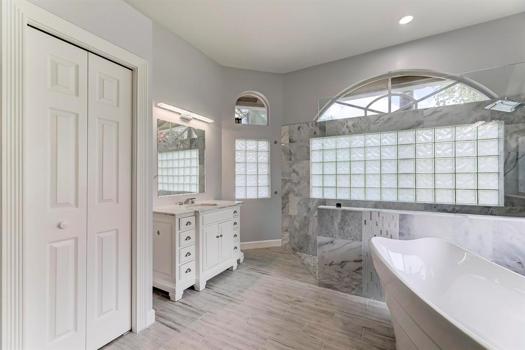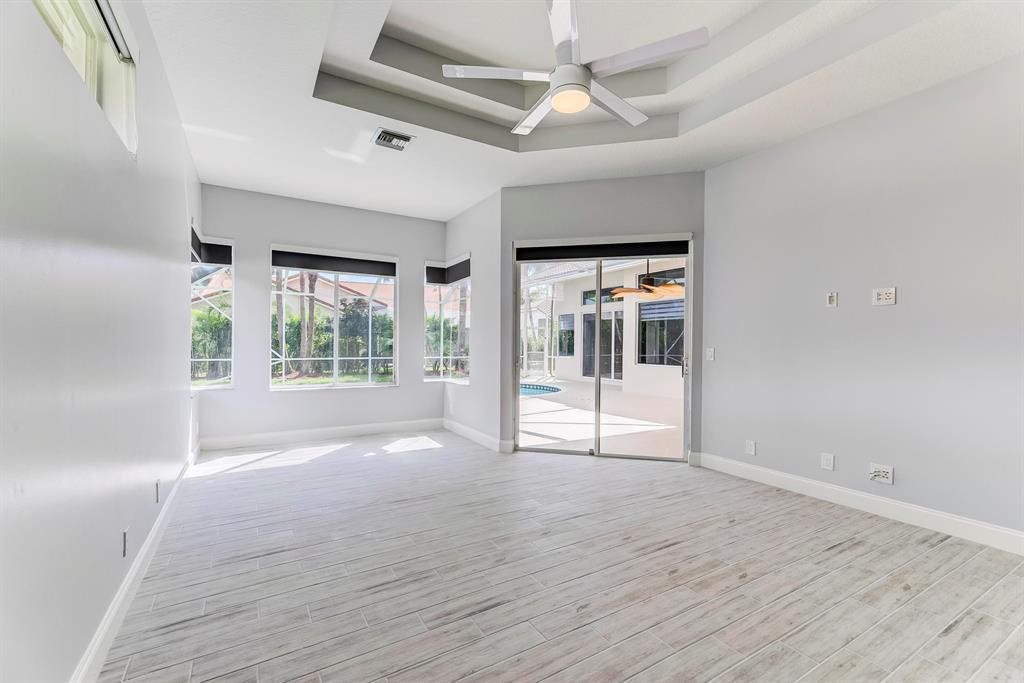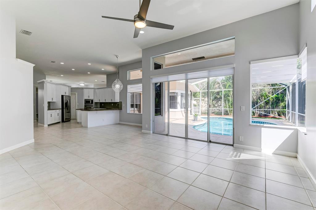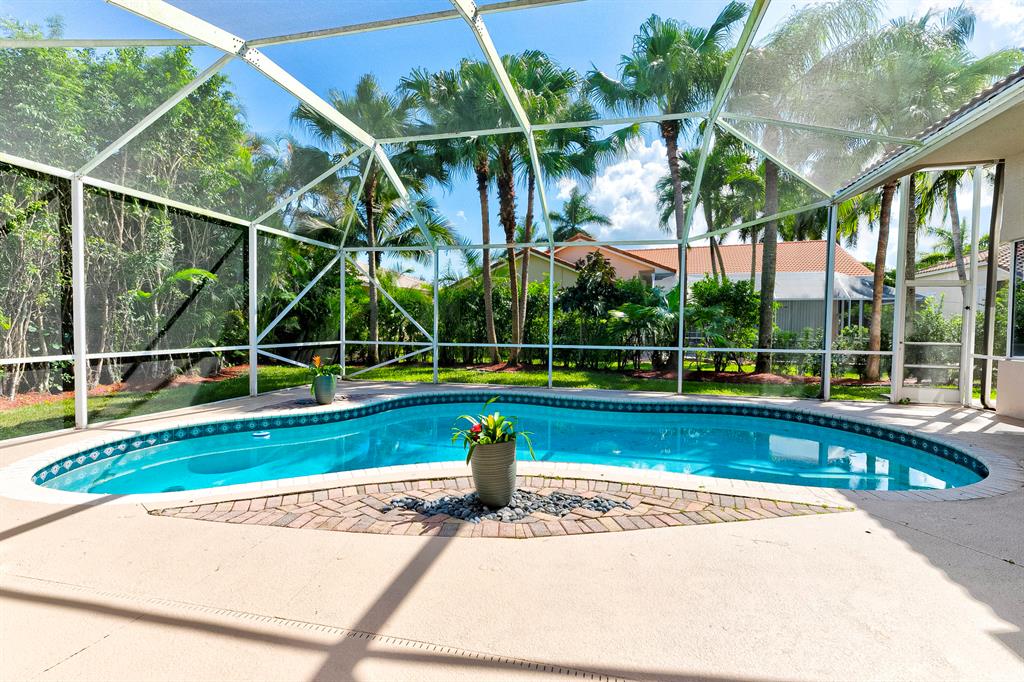 Beautifully updated 5 bedroom/3.5 bathroom house in Meadow Run with a triple-split floor plan and screened in pool. Inside of house newly painted - neutral gray color. All bathrooms completely renovated. Large Master bedroom with sitting area. The master bathroom has a free standing tub and amazing walk-in shower. All bedrooms have new tile flooring. Beautiful, open kitchen looks out onto patio and family room. New black-out shades in all bedrooms; new white illusion roll shades in main areas. All new fans and LED light fixtures. Freshly landscaped. Home situated on a street that ends in a cul-de-sac. Walk to playground and tennis courts. House is conveniently situated between the 2 manned gates.