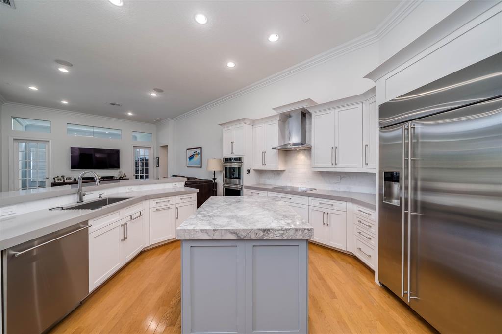 Stunning 5 bedroom, 4 bathroom fully-fenced waterfront home with office and bonus room. The navigable waterway is ideal for boating, jet skiing and kayaking. New roof in 2016, accordion hurricane shutters throughout. Rock waterfall pool with hot tub on an oversized patio surrounded by lush tropical landscaping. Contemporary open floor plan, hardwood floors, surround sound. Kitchen, completely renovated in 2016, with high-end GE Monogram SS appliances, quartz and granite countertops in kitchen, bathrooms, bar area with wine frig. Hunter Douglas window treatments. New patio speakers and TV. Laundry room with Whirlpool washer, dryer. Sprinkler system with water from the lake, new pump. A must see!
