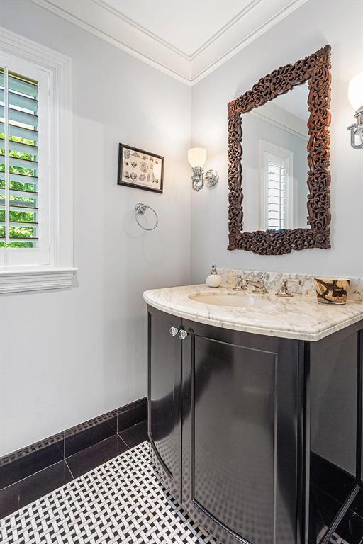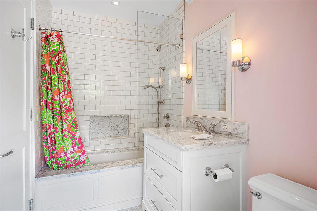 This classic North End Bermuda home was architecturally designed on a tiered lot with the lowest levels at 15'elevation and highest point at 23' elevation. Between its high elevation and coral ridge setting, this house requires no flood insurance (FEMA flood zone X) despite being steps from the ocean and intracoastal. Completely renovated in 2014, this home includes sleek, open interiors, vaulted tongue and groove ceilings, and original oak floors. The renovations also include a stunning custom kitchen with milk glass backsplash and eat in nook, quartzite counters, two dishwashers and top of the line appliances. LED lighting illuminates the kitchen and great room.