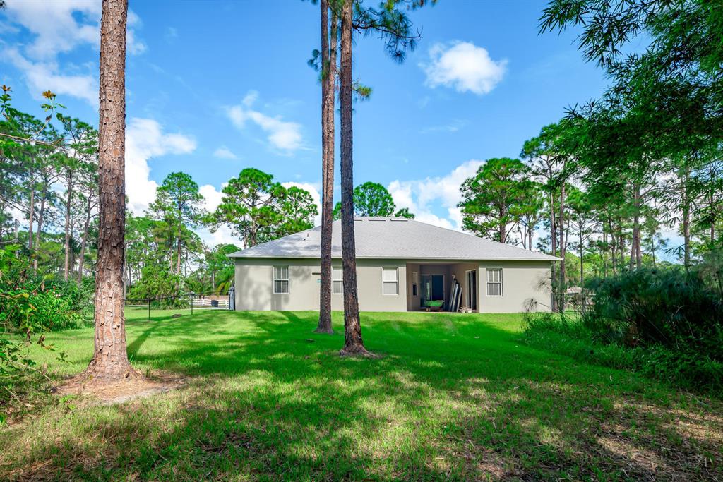 From the moment you enter this Centex built home, the high ceilings and 4 bedrooms make this house feel much larger than the 2,220 sqft. Fresh paint, beautiful built-in closets in the Master, wood laminate flooring in the bedrooms, high-top bar around the kitchen and many more things to see. Entertain guests with a formal dinning room and huge family room for those special occasions. Fenced in yard and 1.15 acre lot have plenty of space to store your toys and animals to run free! It's in the Northeastern area of the Acreage, allowing easy access in and out. Citrus Grove Park is less than a mile away!!