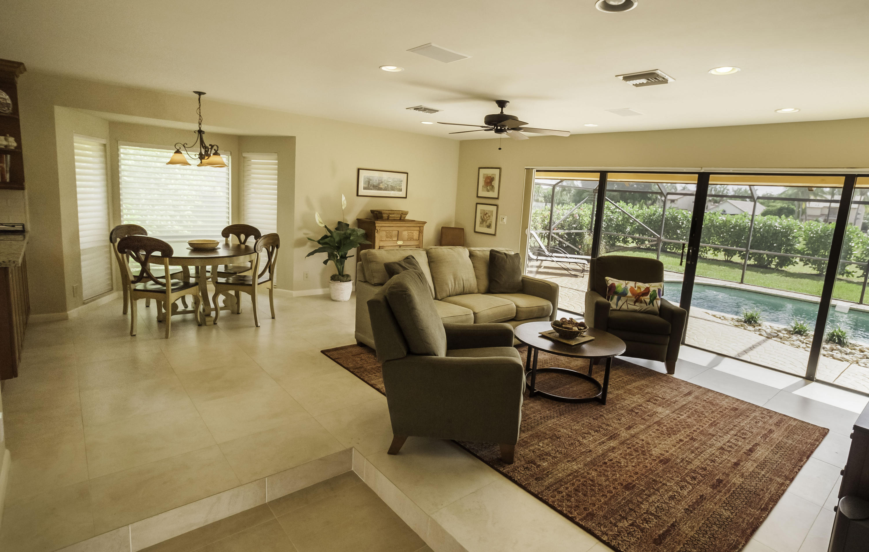 An elegant one story custom home, with totally renovated kitchen and baths (2015/16), move in ready, in an upscale subdivision. Enter to an open concept floor plan with vaulted ceilings, perfect for the enjoyment of the family and entertaining. From the great room, living room and kitchen enjoy a southern view of the sparkling screened-in pool and private backyard on the Hillsboro canal. This home is meticulously well kept, the pride of ownership is absolutely apparent. The sellers have made many improvements during their ownership. New kitchen, featuring solid wood cabinets, granite countertops, subway tile backsplash, KitchenAid fridge, LG range, and hood, Bosch dishwasher, LED lighting. New master bathroom, finished with solid wood vanity, double sinks, granite countertops