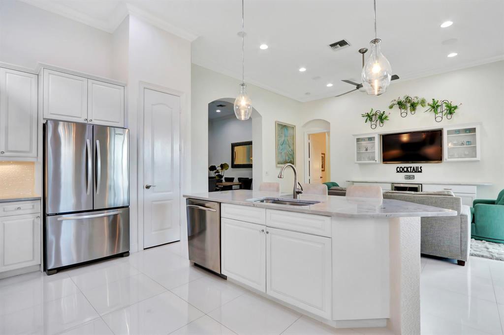 Over $100,000 in recent upgrades for this fabulously renovated home. Oversized high-gloss porcelain tile throughout creates a sought-after and hard-to-achieve modern look. Complemented by gorgeous architectural features including arches and dramatic tray ceilings, this home is ready to be your dream home. Stunning white/soft gray quartzite counters, new ''glam'' backsplash, new entertainment center in family room, new etched Impact Glass front entry, new plantation shutters and more. All three bathrooms have been updates. New designer light fixtures and fans. Replaced equipment includes AC, pool motor and pump. There is all new screening on back lanai with new lush landscaping. The ''Monaco'' floor plan boasts 2BR/2.5BA+Den, however the Den could easily be transformed into a t